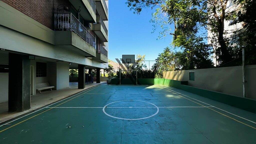 Na área de lazer do prédio, é possível usufruir de piscina adulto com bar de apoio, academia, quadra poliesportiva, salão de festas e de playground com brinquedos infantis. O condomínio também oferece portaria 24 horas com controle de acessos e monitoramento por câmeras.