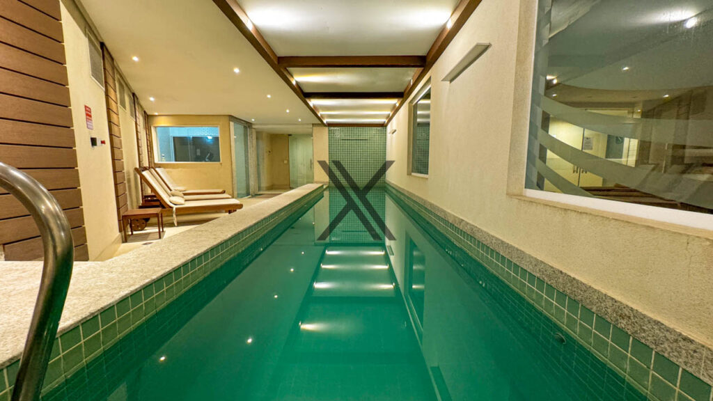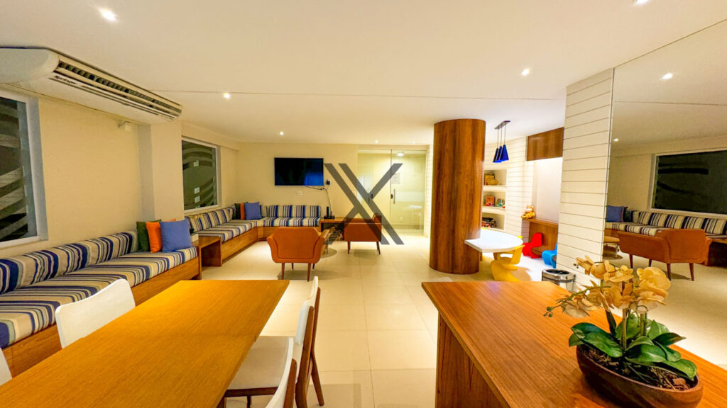 O condomínio ainda oferece portaria 24h com excelente apresentação, controle de acessos e circuito de câmeras, além de dispor de uma área de lazer completa com salão de festas, sauna, piscina e academia.