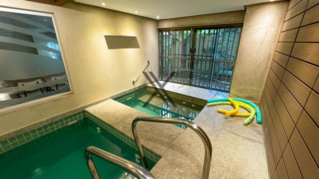 Na parte privativa, há 4 suítes, todas bem espaçosas, sendo 2 com acesso à varanda. A suíte master possui um excelente banheiro com duas cubas e banheira.