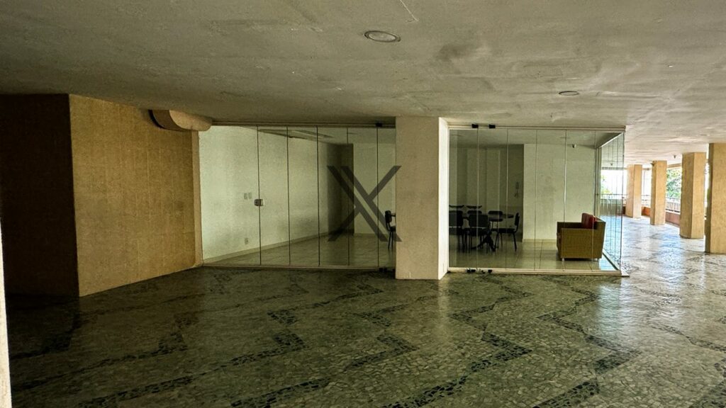 Na parte social, há uma sala para dois ambientes com acesso a uma belíssima varanda, com mais dois ambientes e piso nivelado, além de fechamento em vidro. Para apoio, há um lavabo no início da parte privativa.