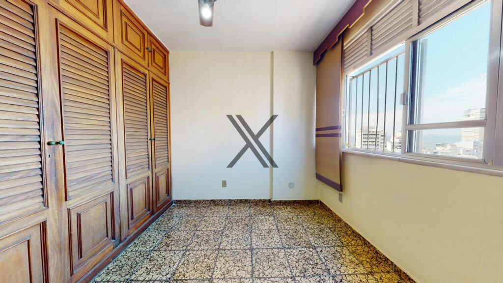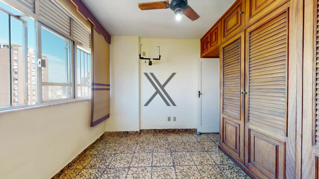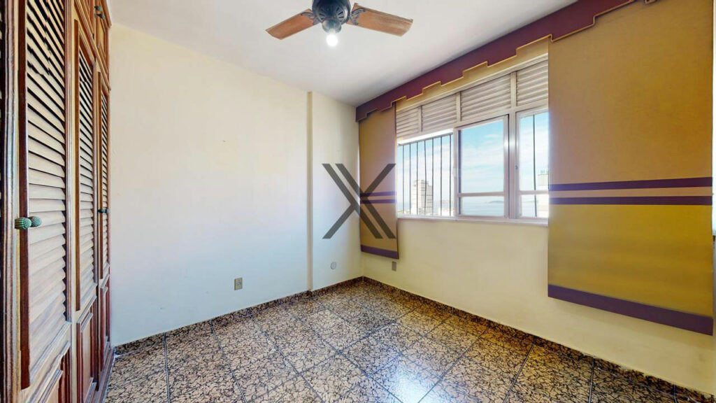 Por se tratar de um prédio antigo, o imóvel possui um belo pé-direito superior a 3 metros nos quartos e todos os cômodos são amplos e arejados. Na área privativa, há 3 quartos grandes e um banheiro social, todos com armários.