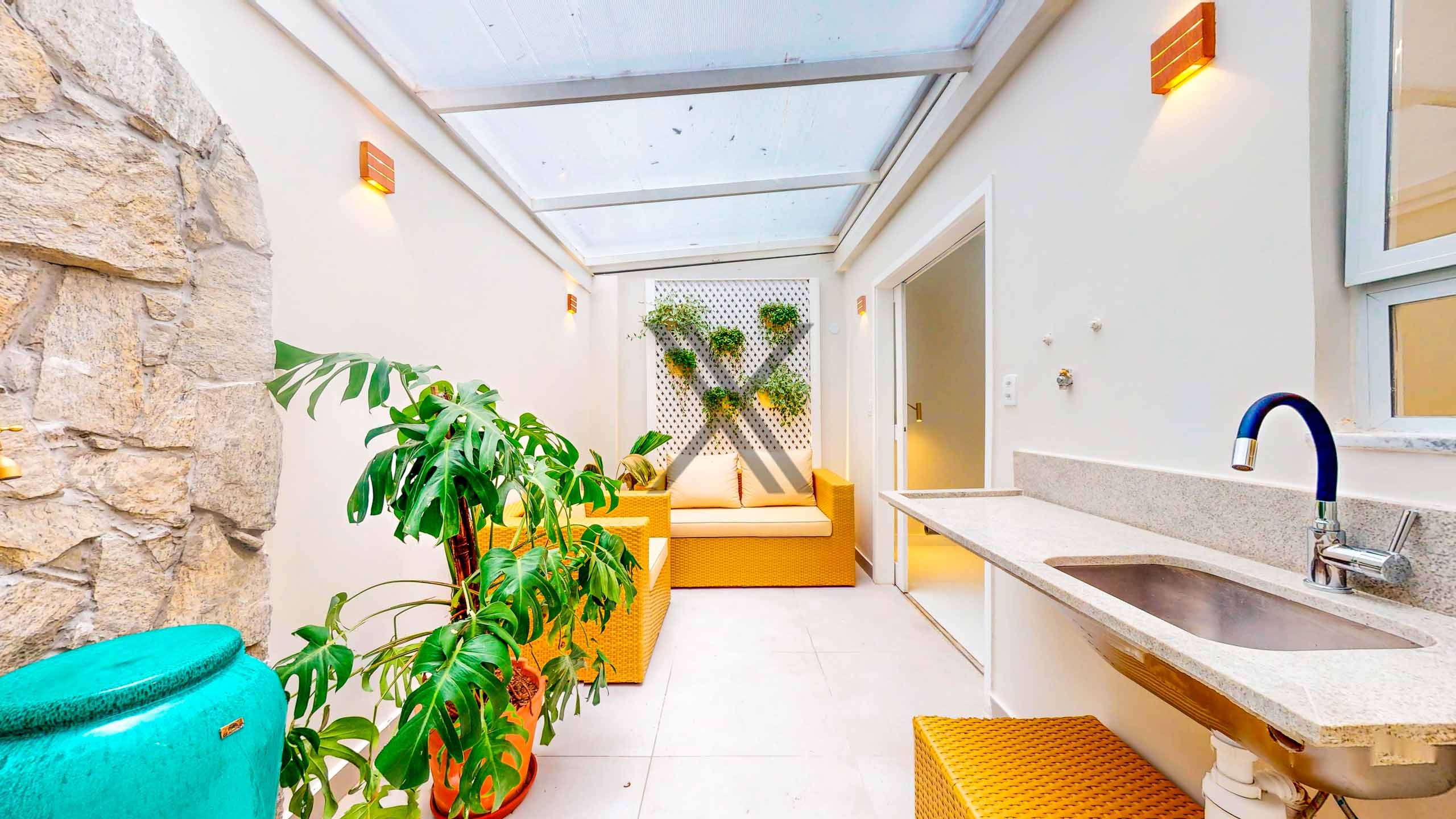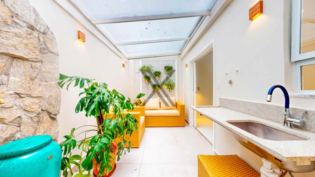 O aconchegante garden possui um bom espaço e uma bancada com cuba para praticidade do dia a dia.