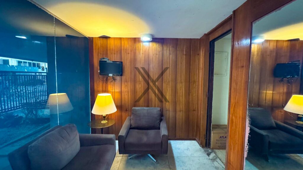 A área social é composta por sala de estar que pode ser dividida em 3 ambientes com inúmeras possibilidades de customização, ar condicionado, amplas janelas que permitem a entrada de bastante luz natural, além de um lavabo de apoio.