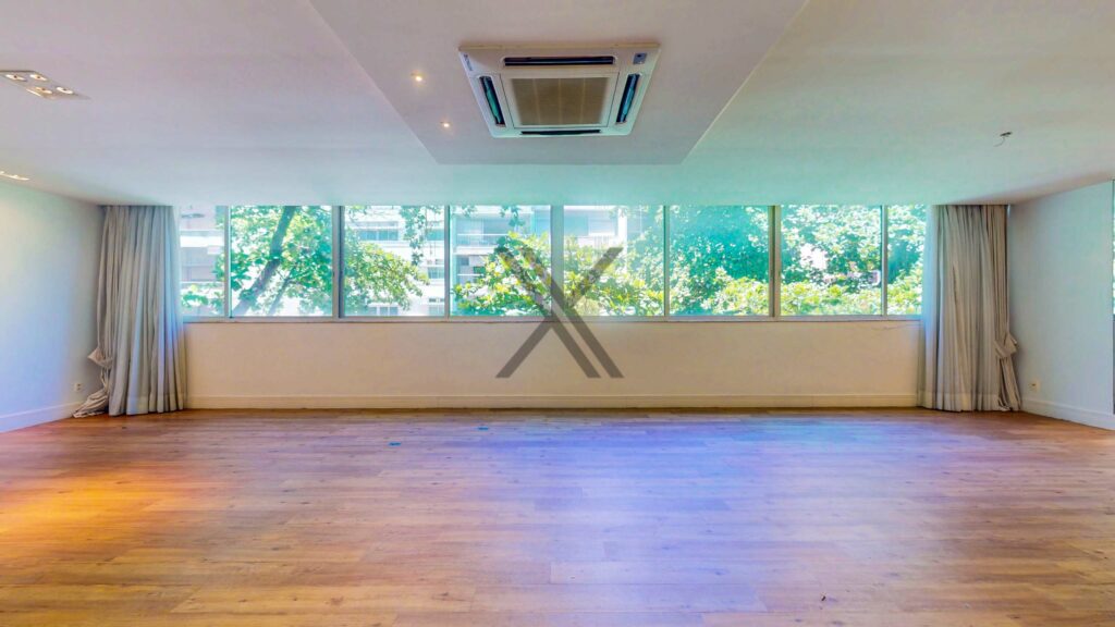 Apartamento com 266m², planta circular e sol da manhã, no Leblon. Localizado em uma rua estratégica, o imóvel tem toda a conveniência necessária para se viver com tranquilidade e resolver tudo a pé, além de estar bem próximo ao metrô e à praia.