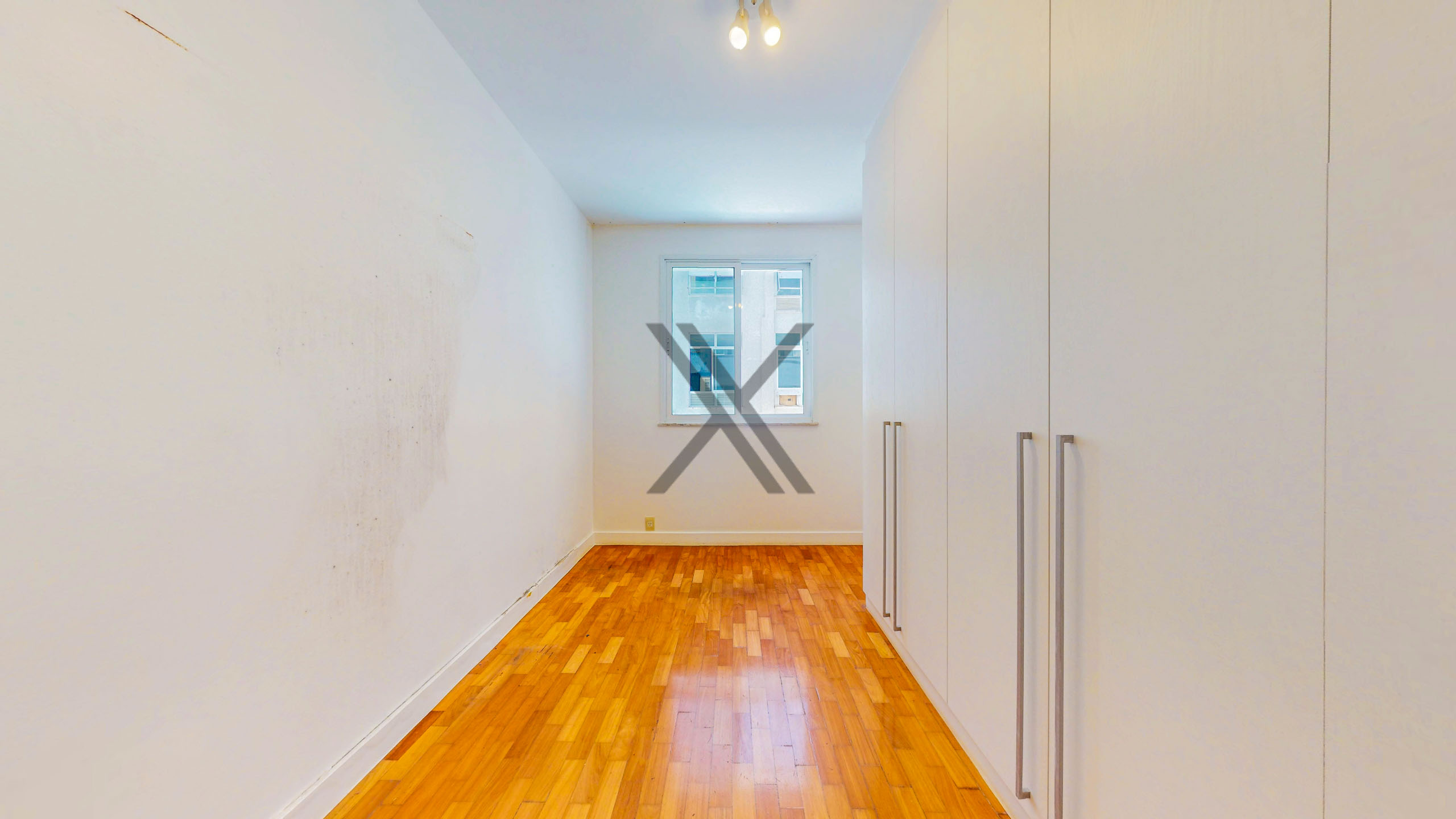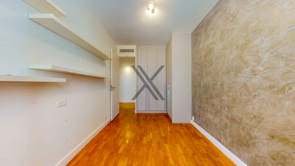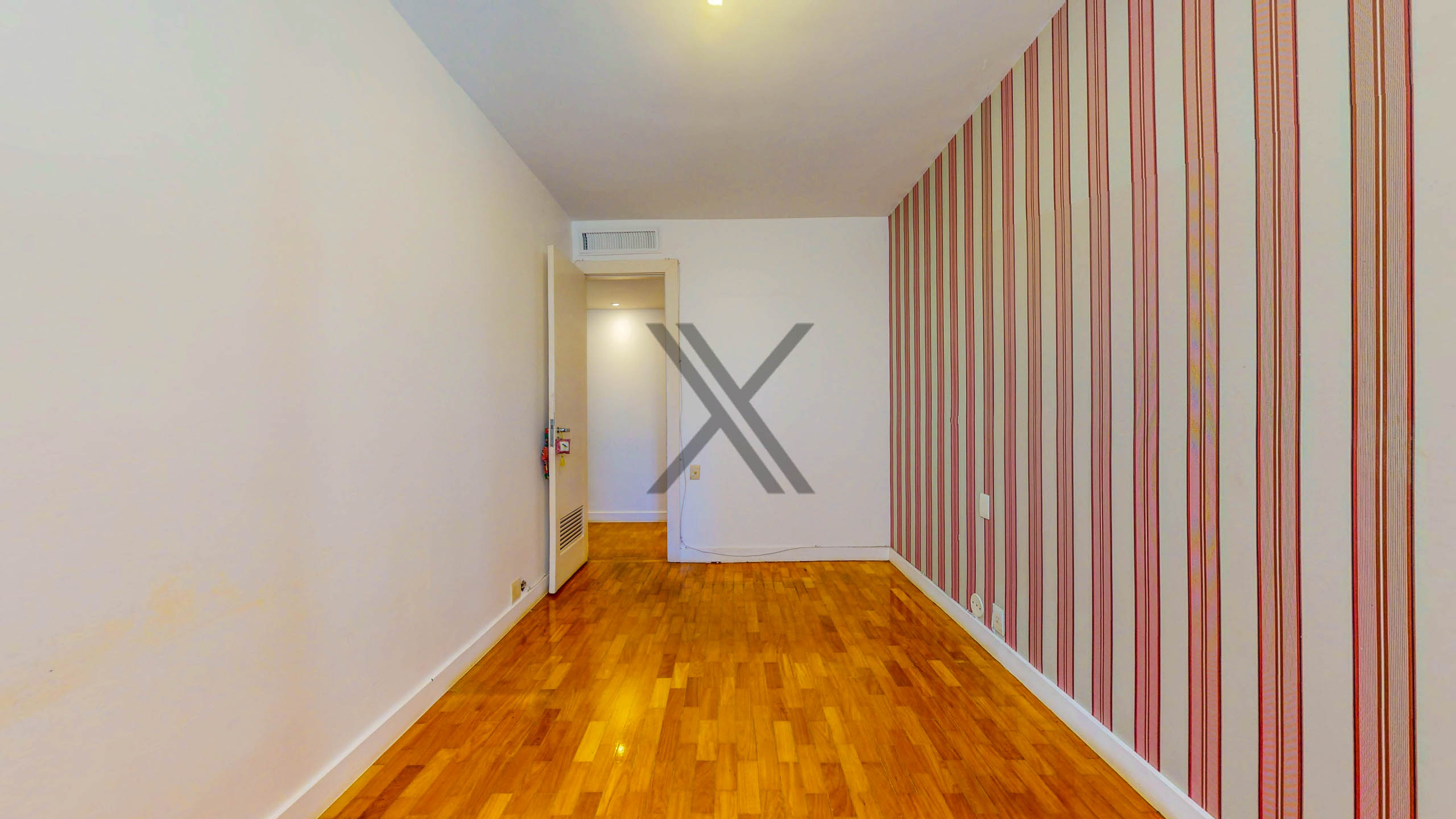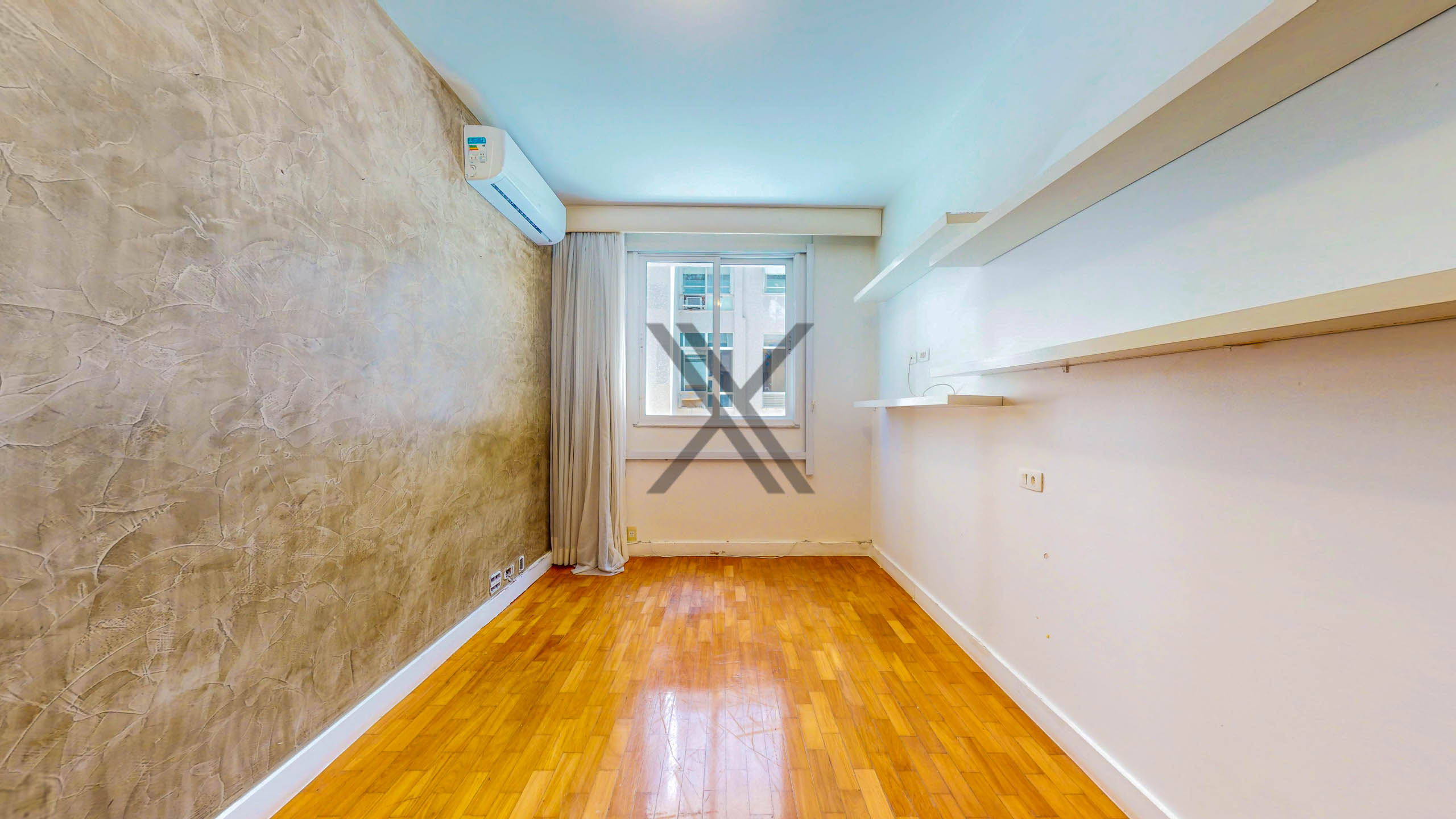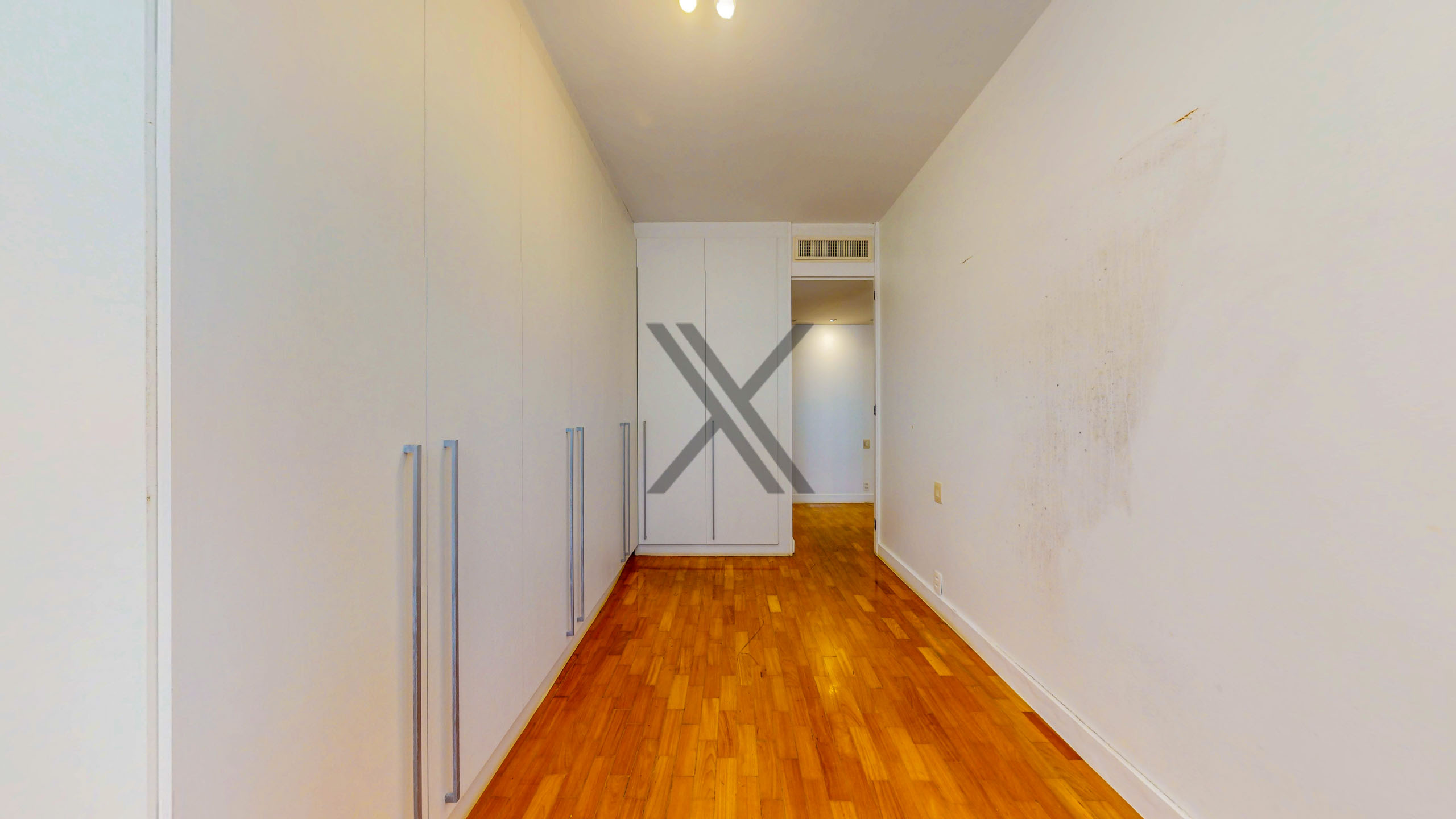 O acesso à área privativa se dá por meio de um extenso corredor, o qual possui um espaço para sala privativa e um roupeiro. A área privativa conta com 4 quartos, sendo 1 suíte, todos de bom tamanho, com piso de madeira em formato de espinha de peixe original em ótimo estado, armários e com toda infraestrutura para instalação de splits pronta. Um banheiro social complementa o ambiente.
