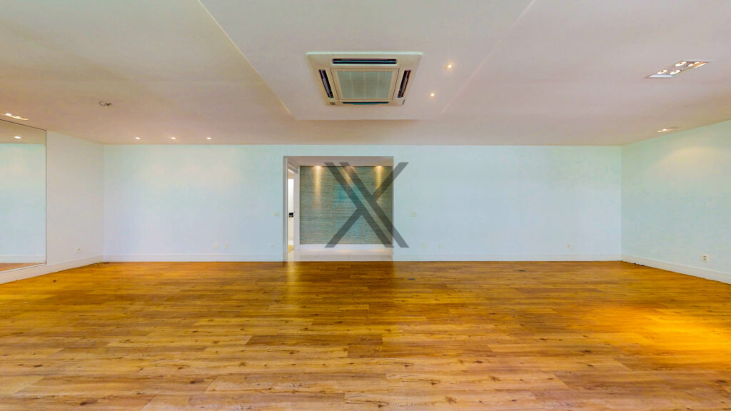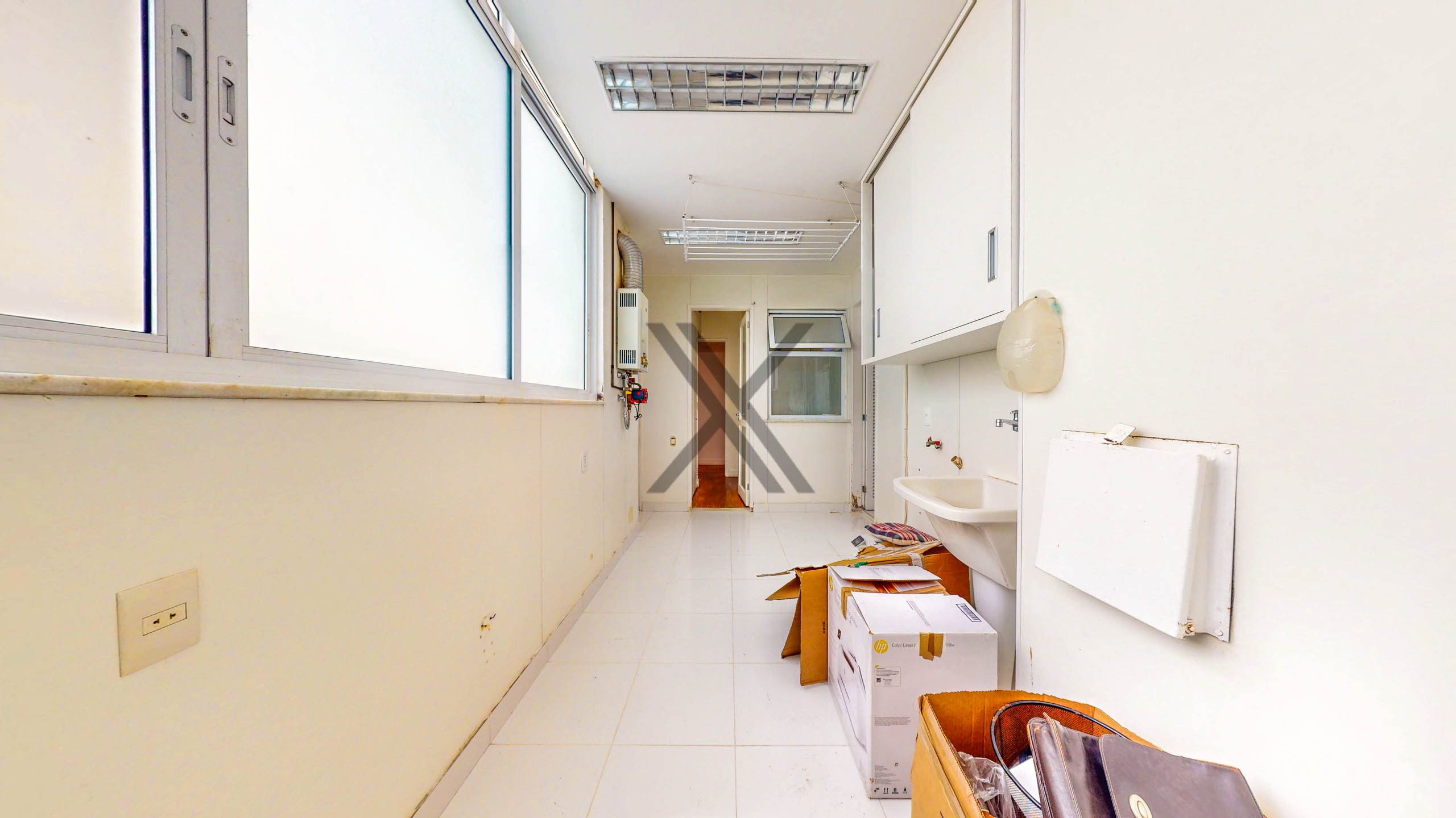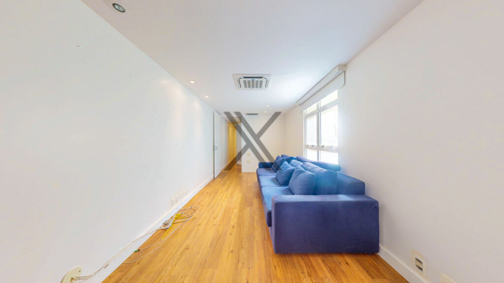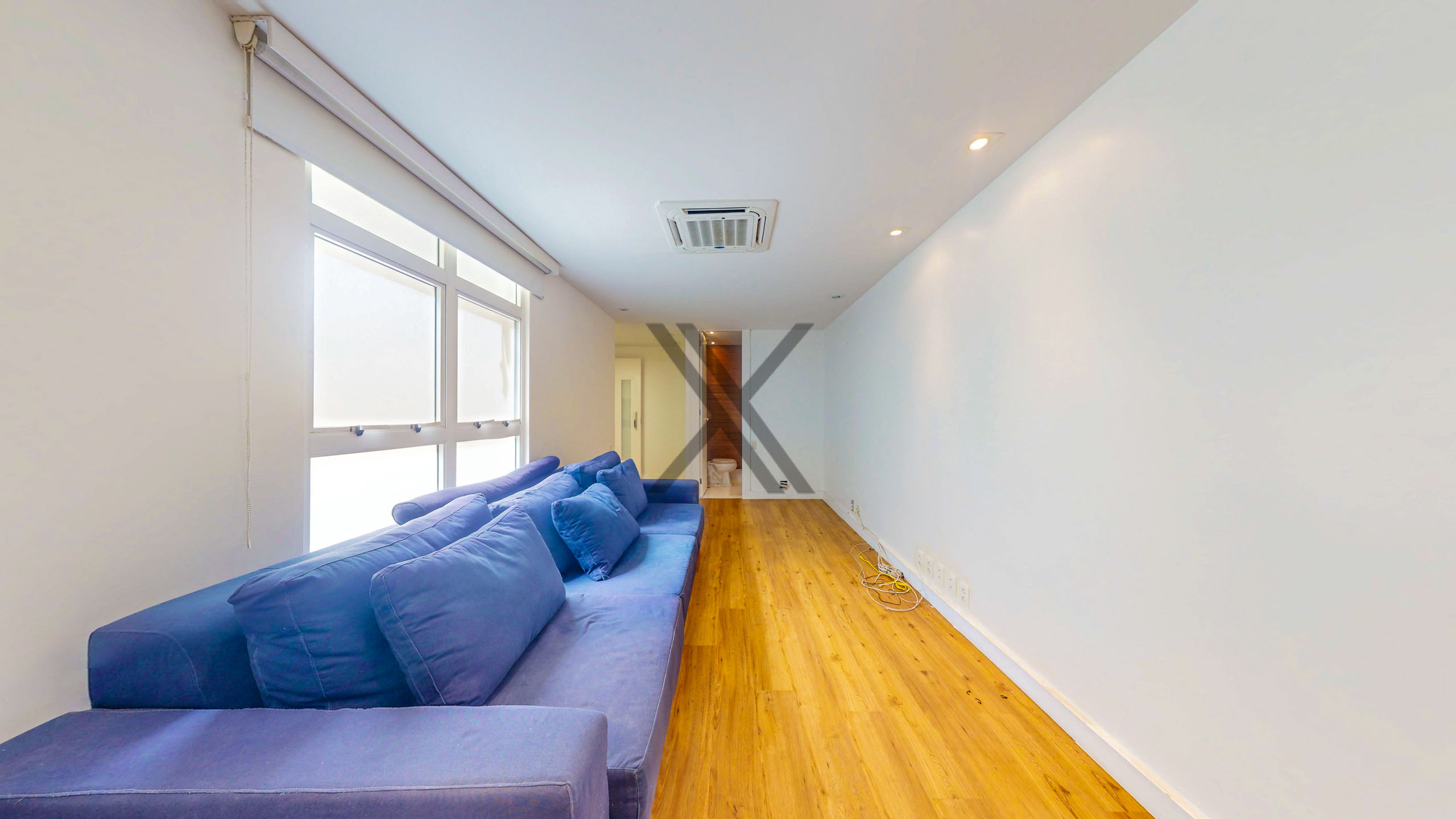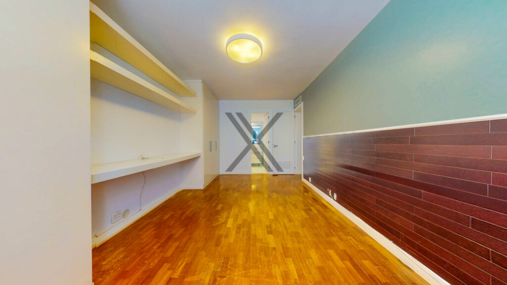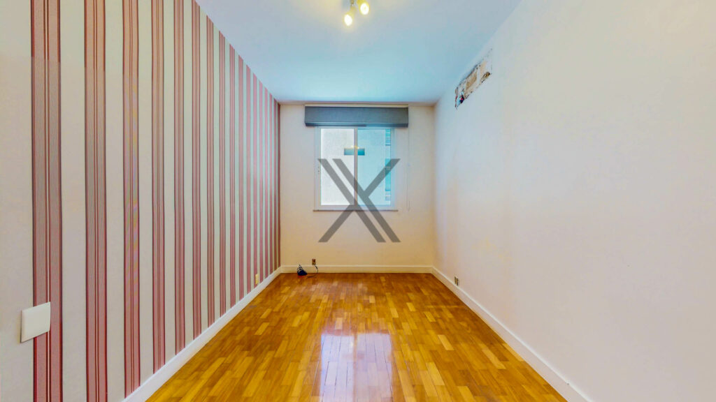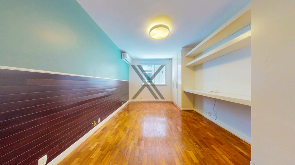 O acesso à área privativa se dá por meio de um extenso corredor, o qual possui um espaço para sala privativa e um roupeiro. A área privativa conta com 4 quartos, sendo 1 suíte, todos de bom tamanho, com piso de madeira em formato de espinha de peixe original em ótimo estado, armários e com toda infraestrutura para instalação de splits pronta. Um banheiro social complementa o ambiente.