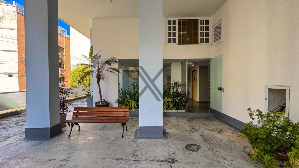 A área social é composta por espaçosa sala de estar com amplas janelas que proporcionam uma excelente iluminação natural, sala de jantar para 8 lugares e riqueza de detalhes nos acabamentos que incluem um elegante piso reformado em porcelanato e projeto luminotécnico. No corredor de acesso à área privativa temos um lavabo de apoio às visitas.