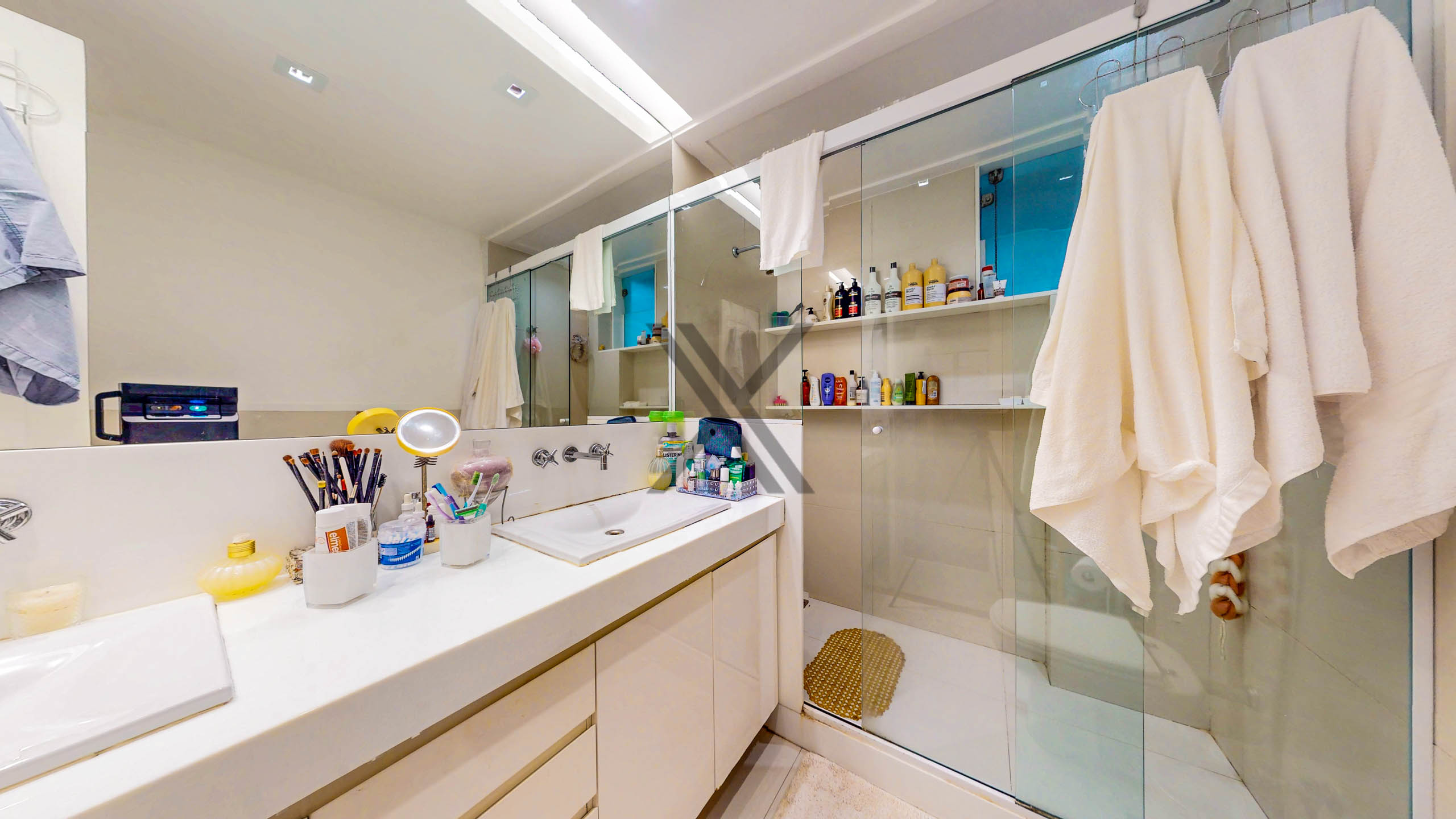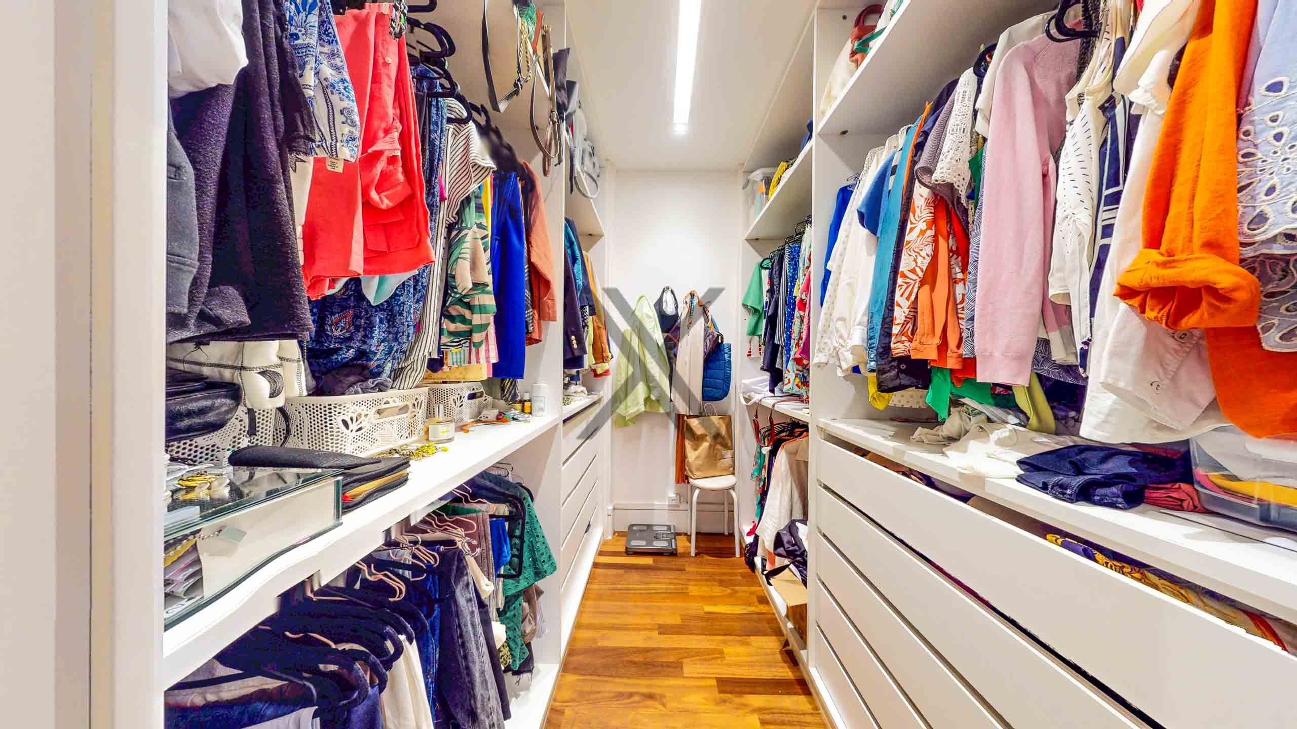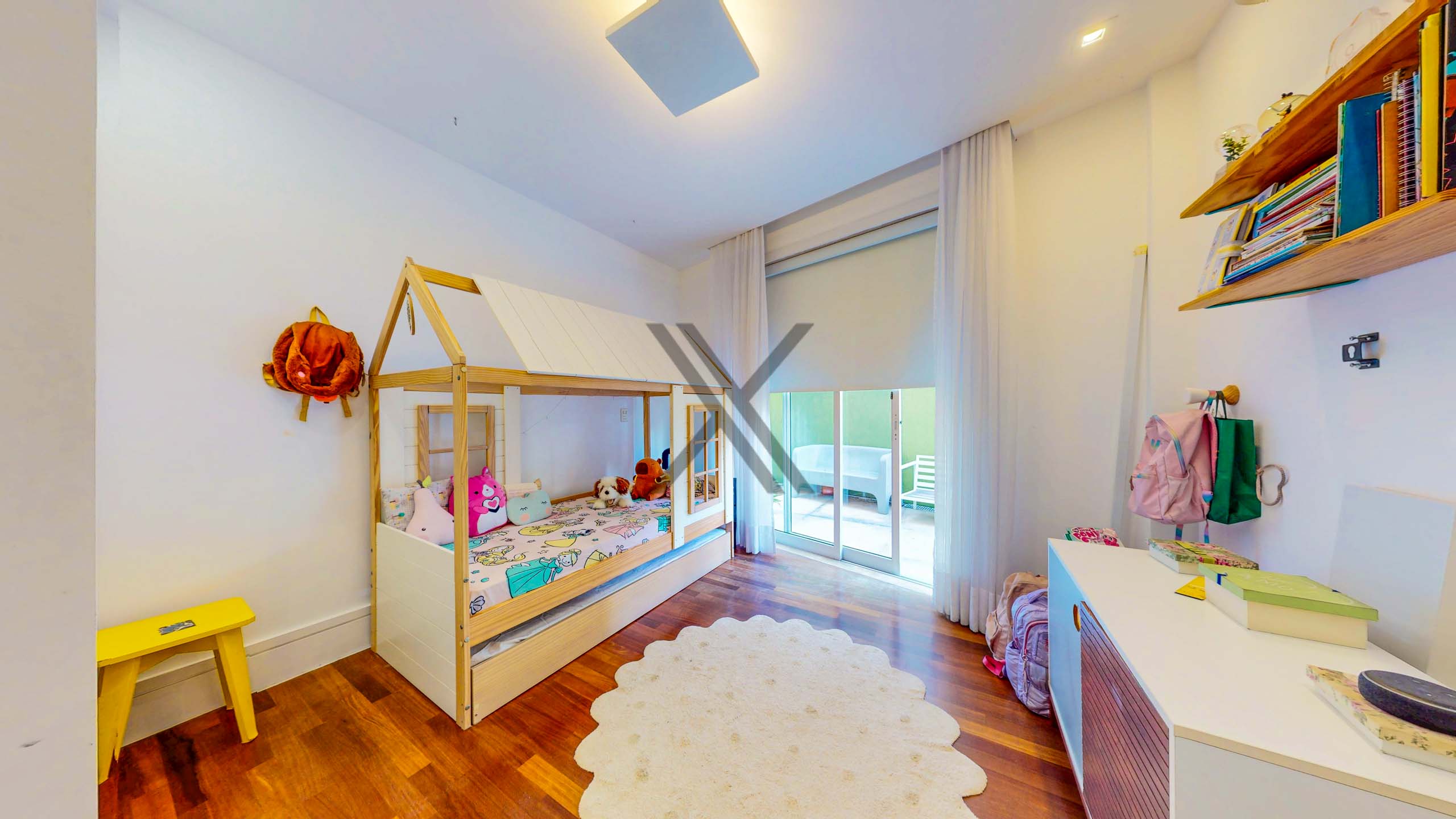 Na área íntima encontramos 5 quartos, sendo 2 suítes, todos dando para área externa do imóvel. A suíte master é um show à parte, com excelente tamanho e walk-in closet. Os outros 3 quartos são bastante amplos, com um bom espaço para uso de camas de casal. Um banheiro social de apoio complementa o ambiente.