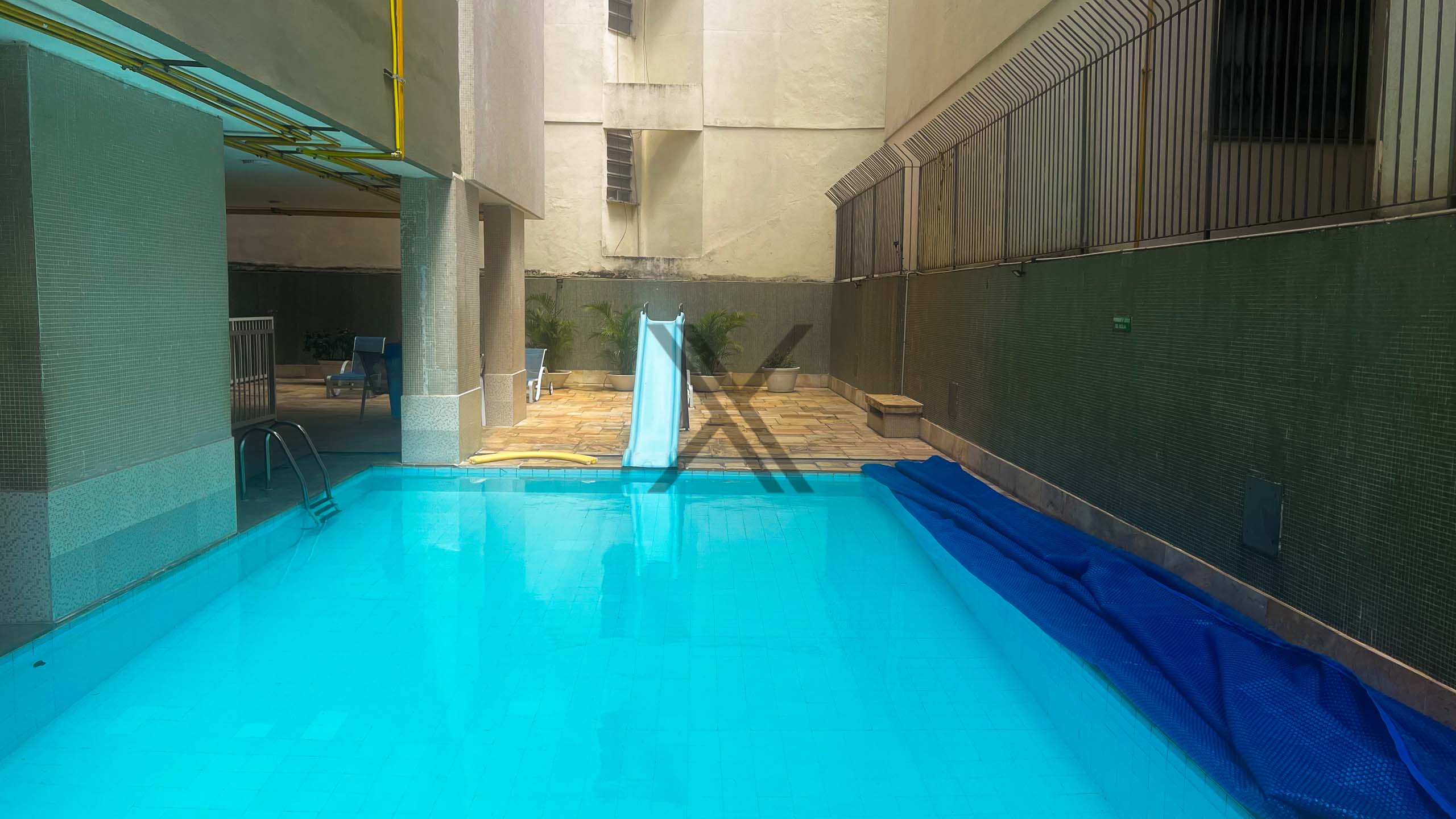 O edifício oferece segurança completa com serviço de portaria 24 horas e circuito interno de TV. Na área de lazer, os moradores podem desfrutar de piscina, playground, salão de festas, sauna e churrasqueira.