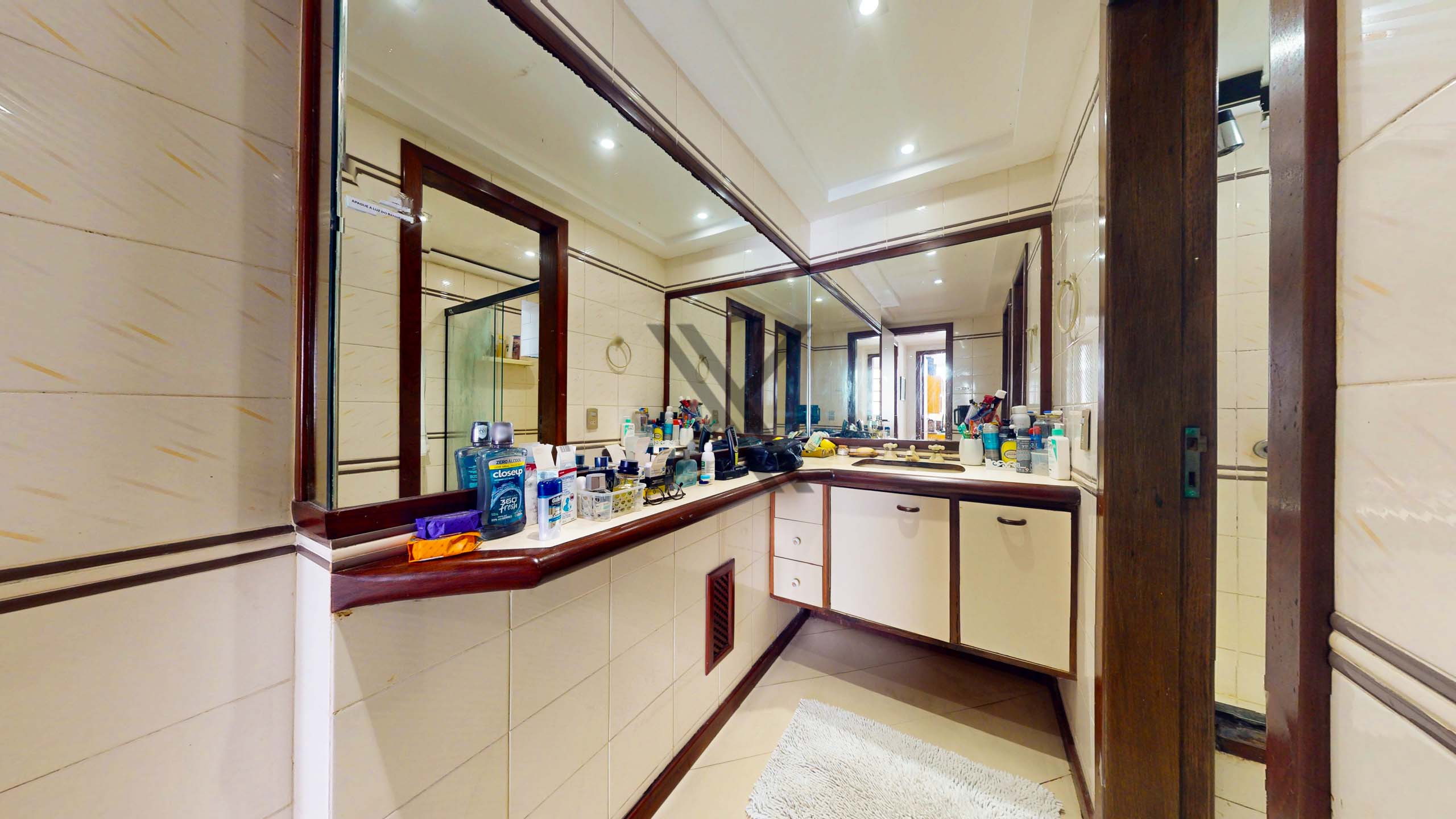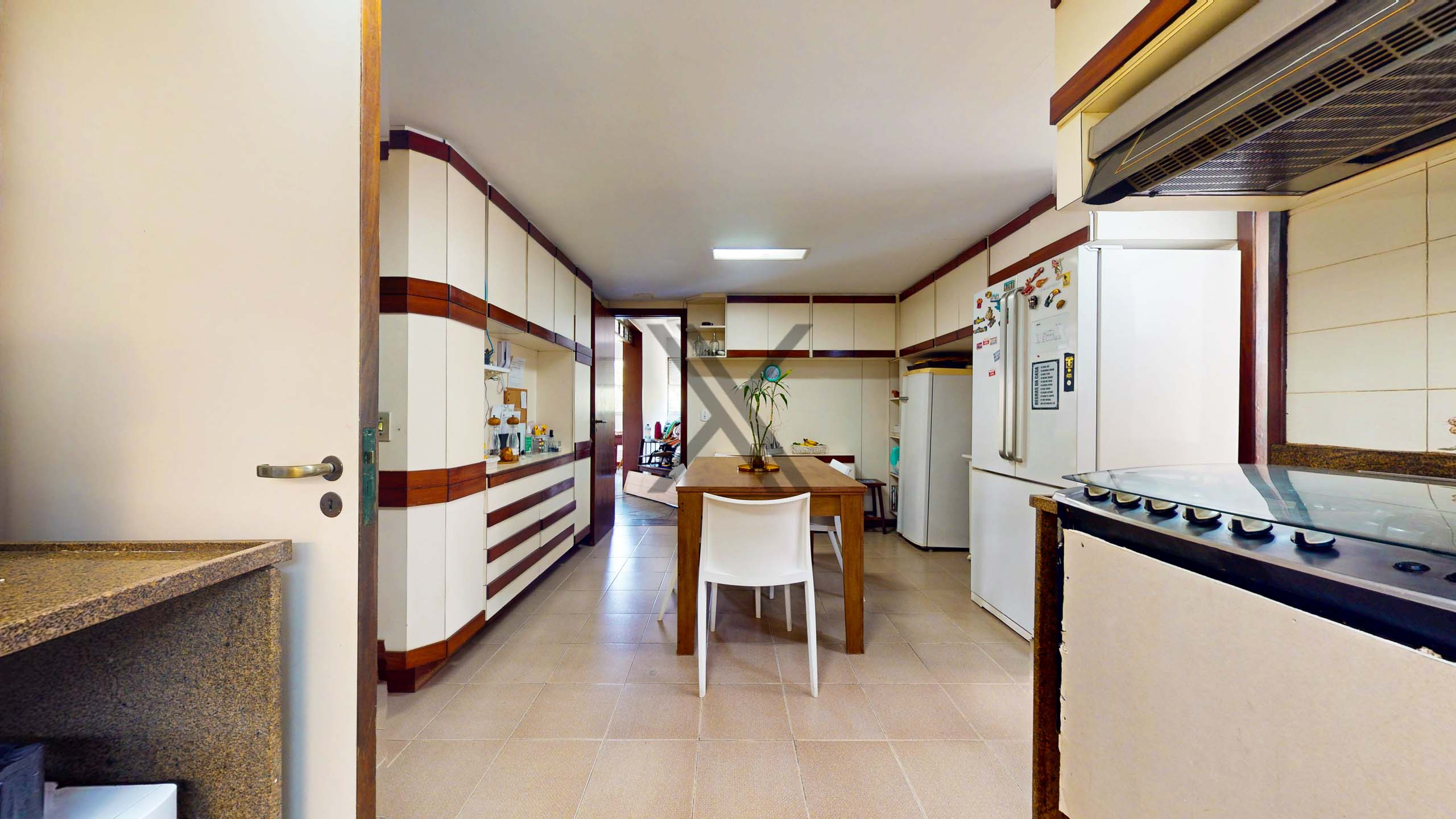 A cozinha possui copa para praticidade do dia a dia dos moradores, grande quantidade de armários e longas bancadas para apoio e organização, os quais garantem bastante espaço de armazenagem. A área de serviço está separada da cozinha e conta com armários, além de duas dependências completas para funcionários.