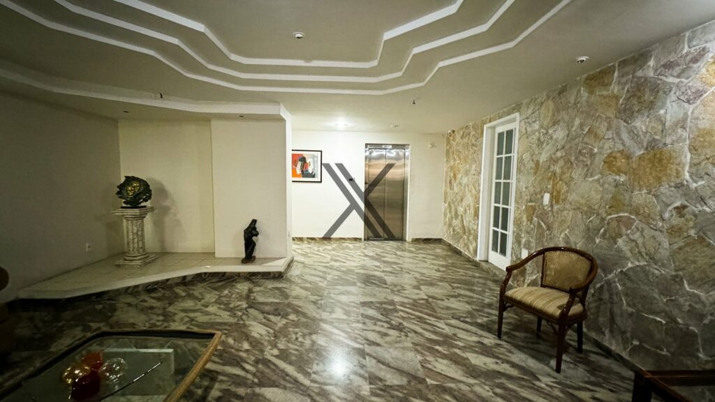 A cozinha está ligada à sala, totalmente modernizada, com cooktop, coifa, torre quente e excelente quantidade de armários. Em anexo, estão a área de serviço e quarto de empregados, transformado em despensa e escritório.