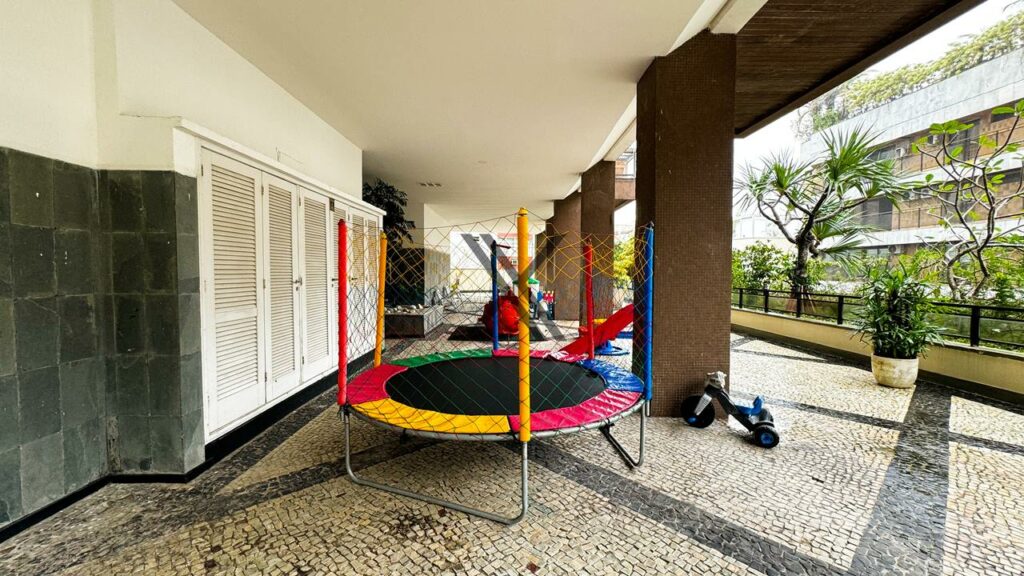 O condomínio oferece portaria 24 horas com boa apresentação, controle de acessos, circuito de câmeras e segurança perimetral. Na área de lazer, é possível usufruir de academia, playground infantil e salão de festas.