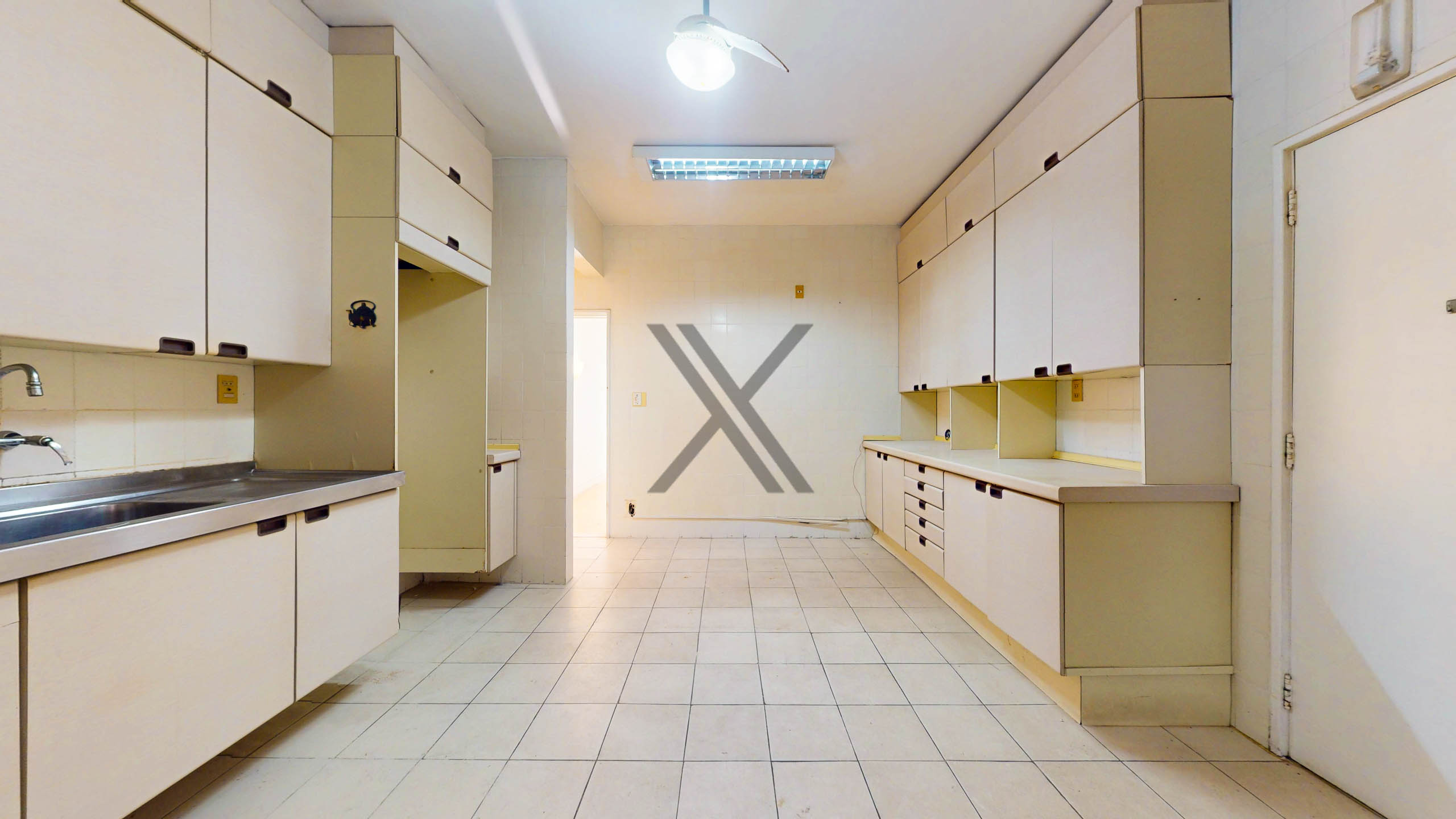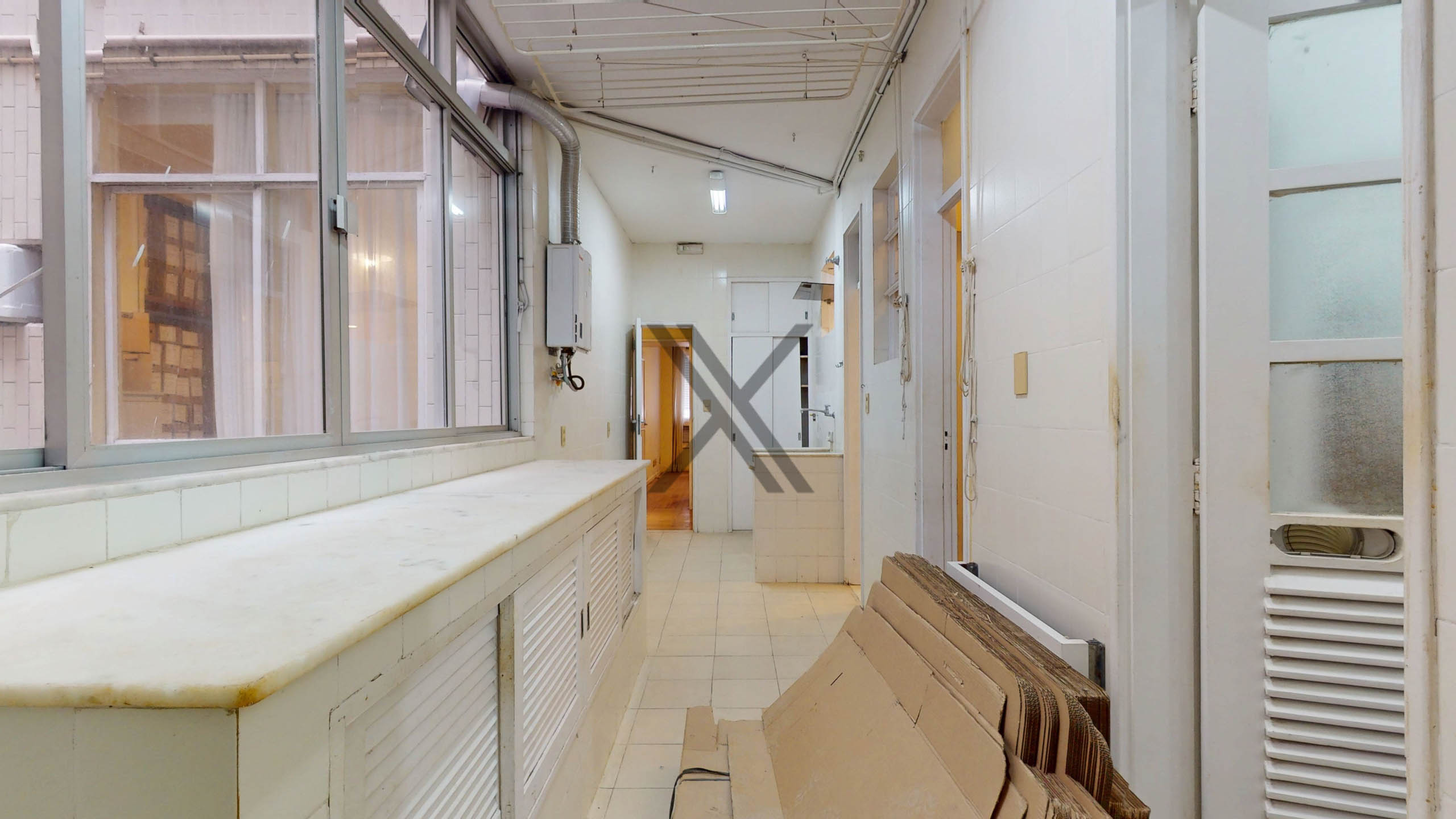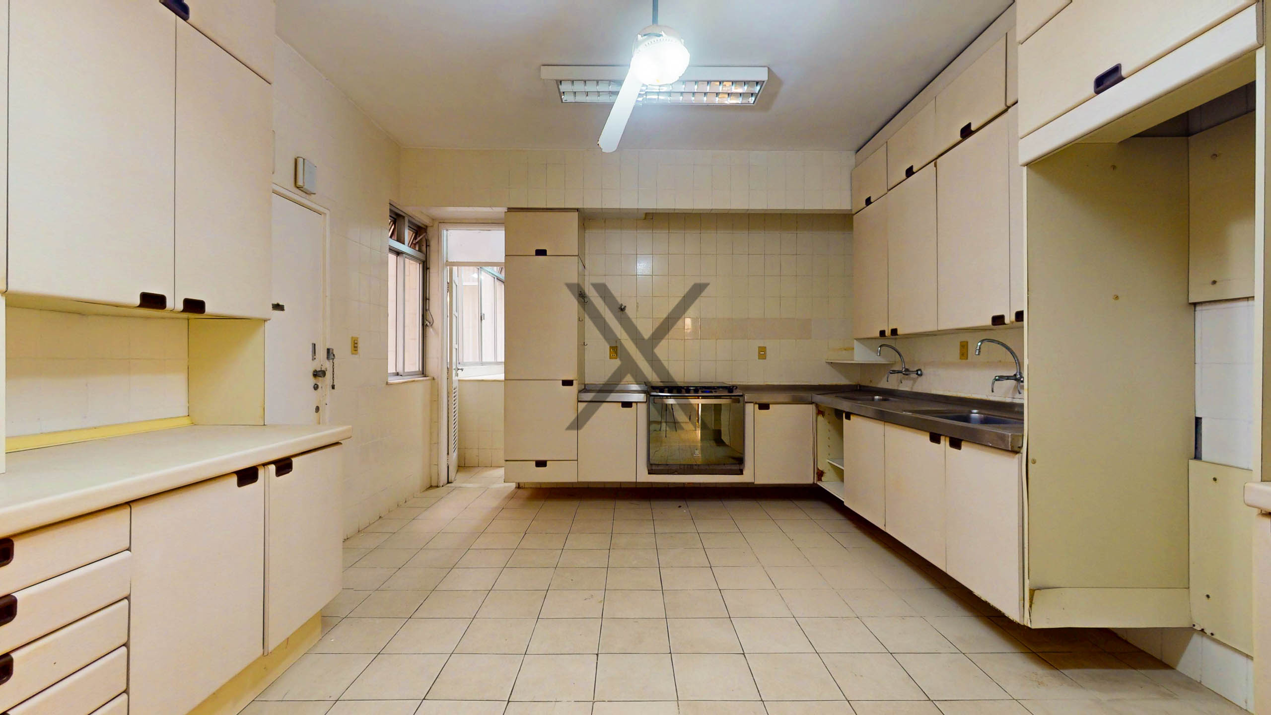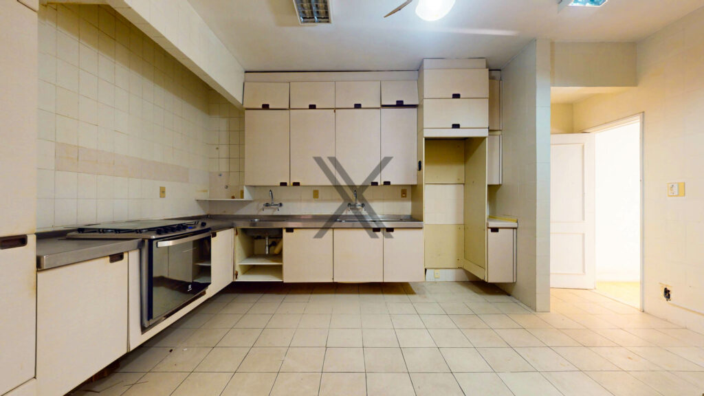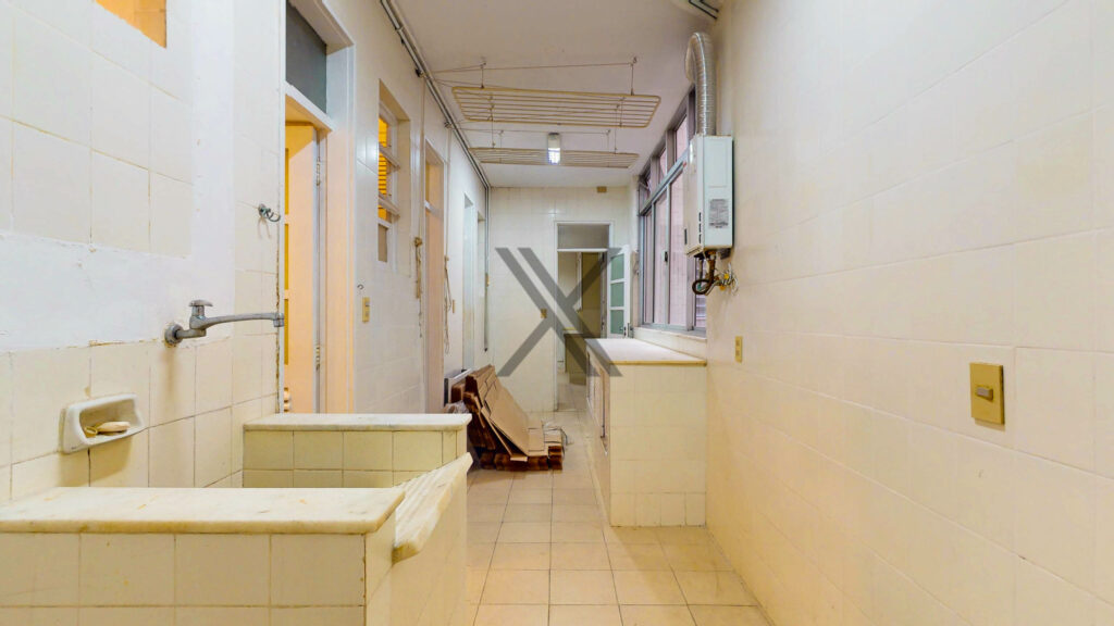 A cozinha possui ótimo espaço de circulação e múltiplas possibilidades de customização. A área de serviço/ lavanderia está separada e conta com duas dependências completas para funcionários.