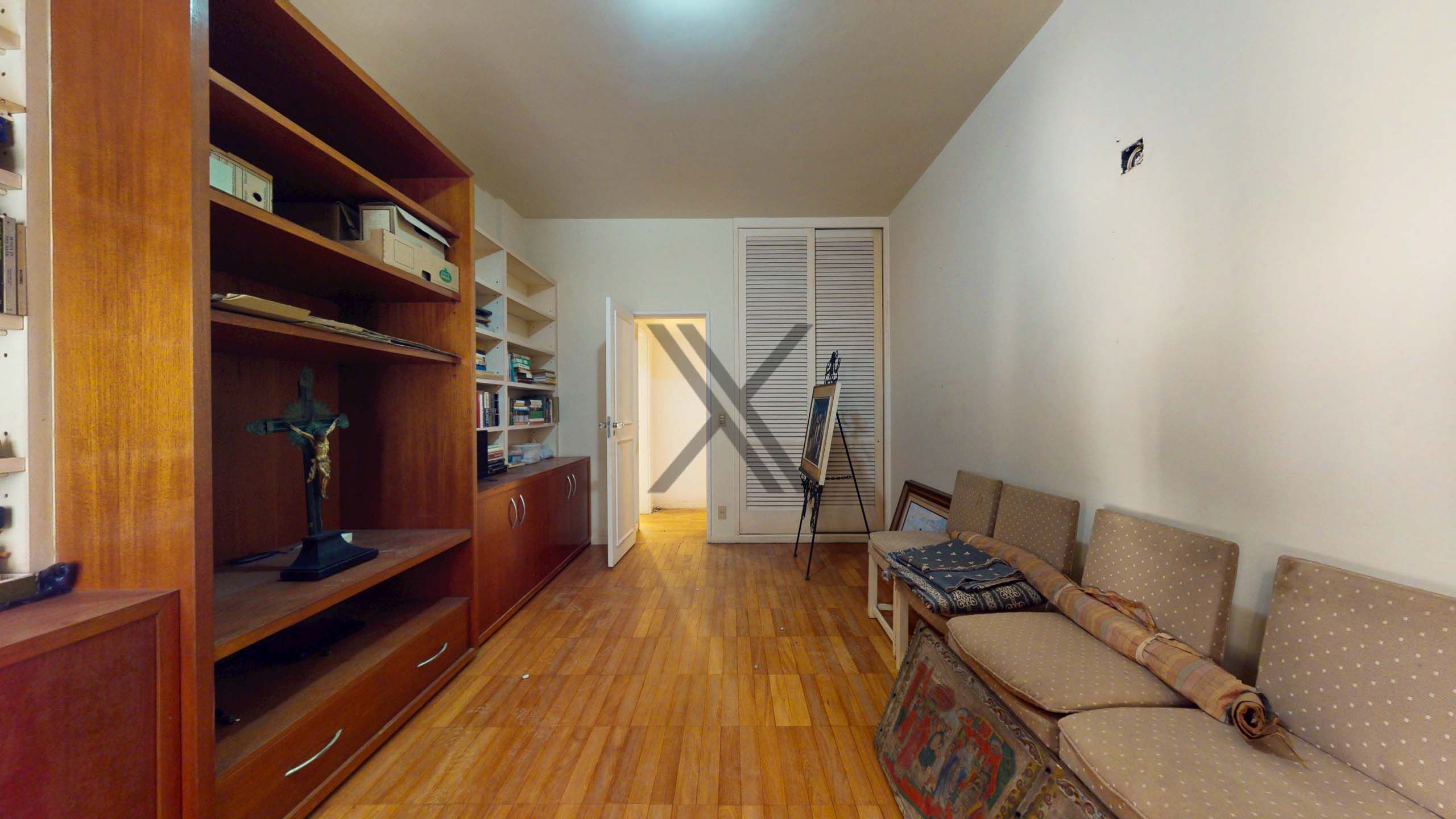 Na parte íntima, são ao todo 4 quartos, sendo 1 suíte, todos com um bom tamanho, armários e piso em taco original. A suíte master conta com espaço para closet com grande quantidade de armários, além do banheiro espaçoso. Há também um banheiro social em apoio aos quartos.