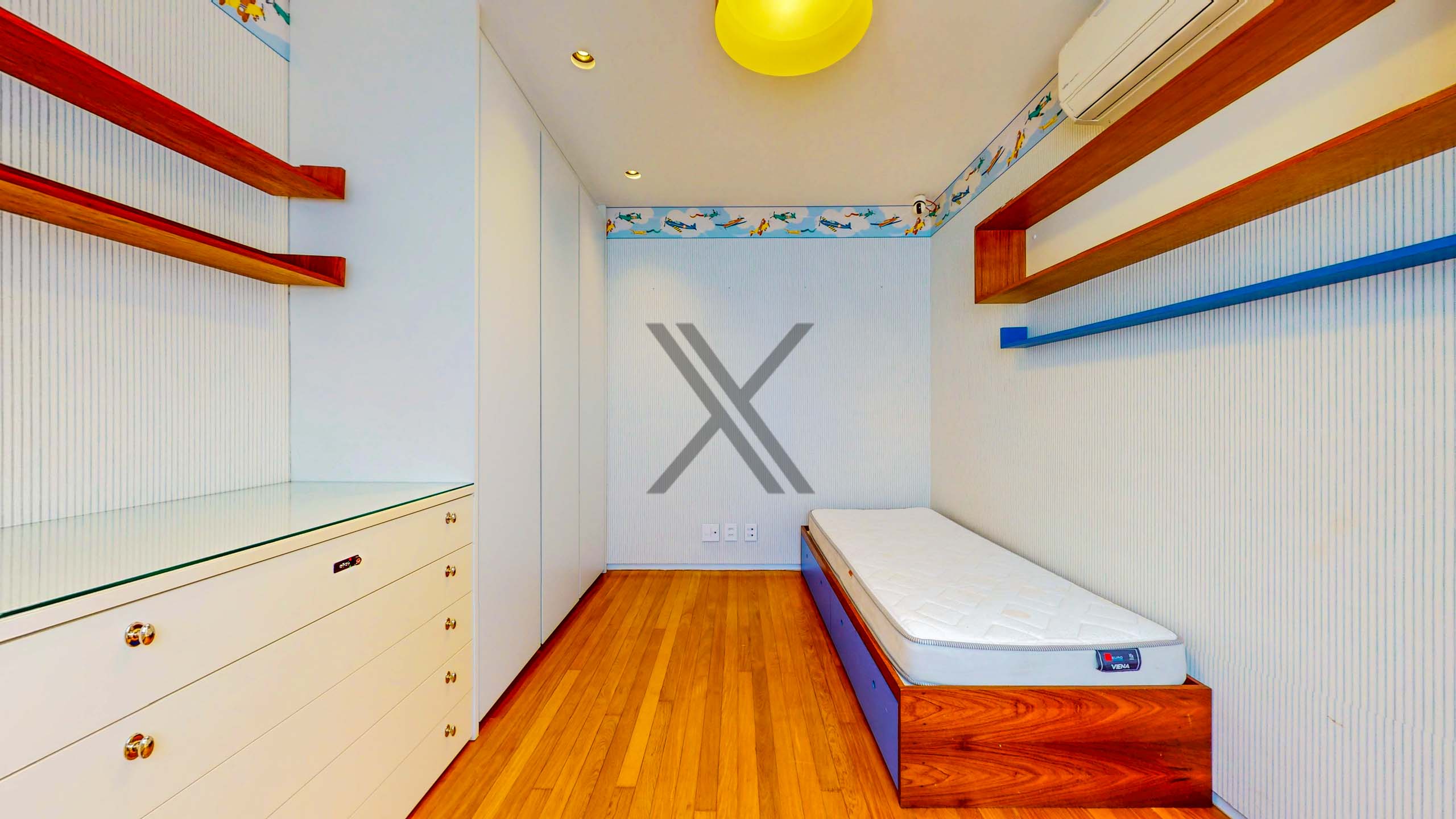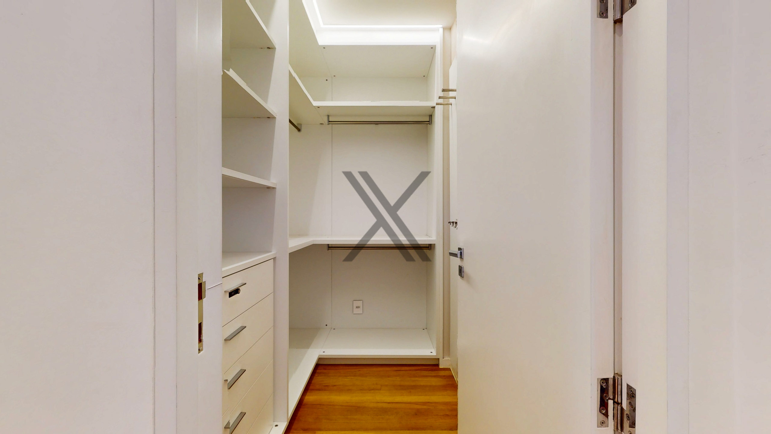 O segundo pavimento tem uma excelente área de convívio com TV e bancada gourmet. A parte privativa é composta por 4 suítes, todas com ótimo tamanho, armários e splits instalados. A suíte master é um show à parte, pois conta com dois walk-in closets e banheiro com pia dupla, banheira e chuveiro.