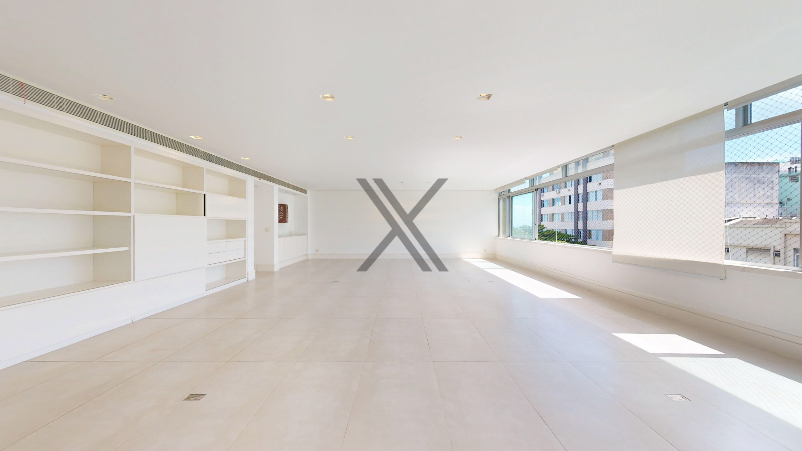 Cobertura duplex de 567 m², planta ampla e circular, no Leblon. Sua localização privilegiada garante fácil acesso à Praia do Leblon, ao Shopping, metrô e ao farto comércio da região. O prédio é exclusivo e tem ótima aparência, com apenas 1 unidade por andar.