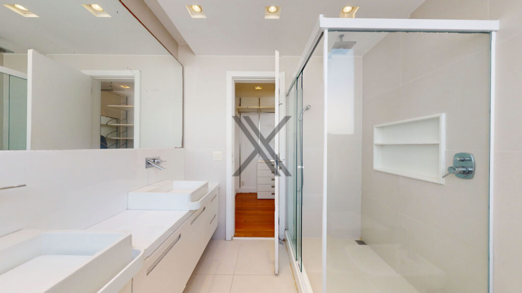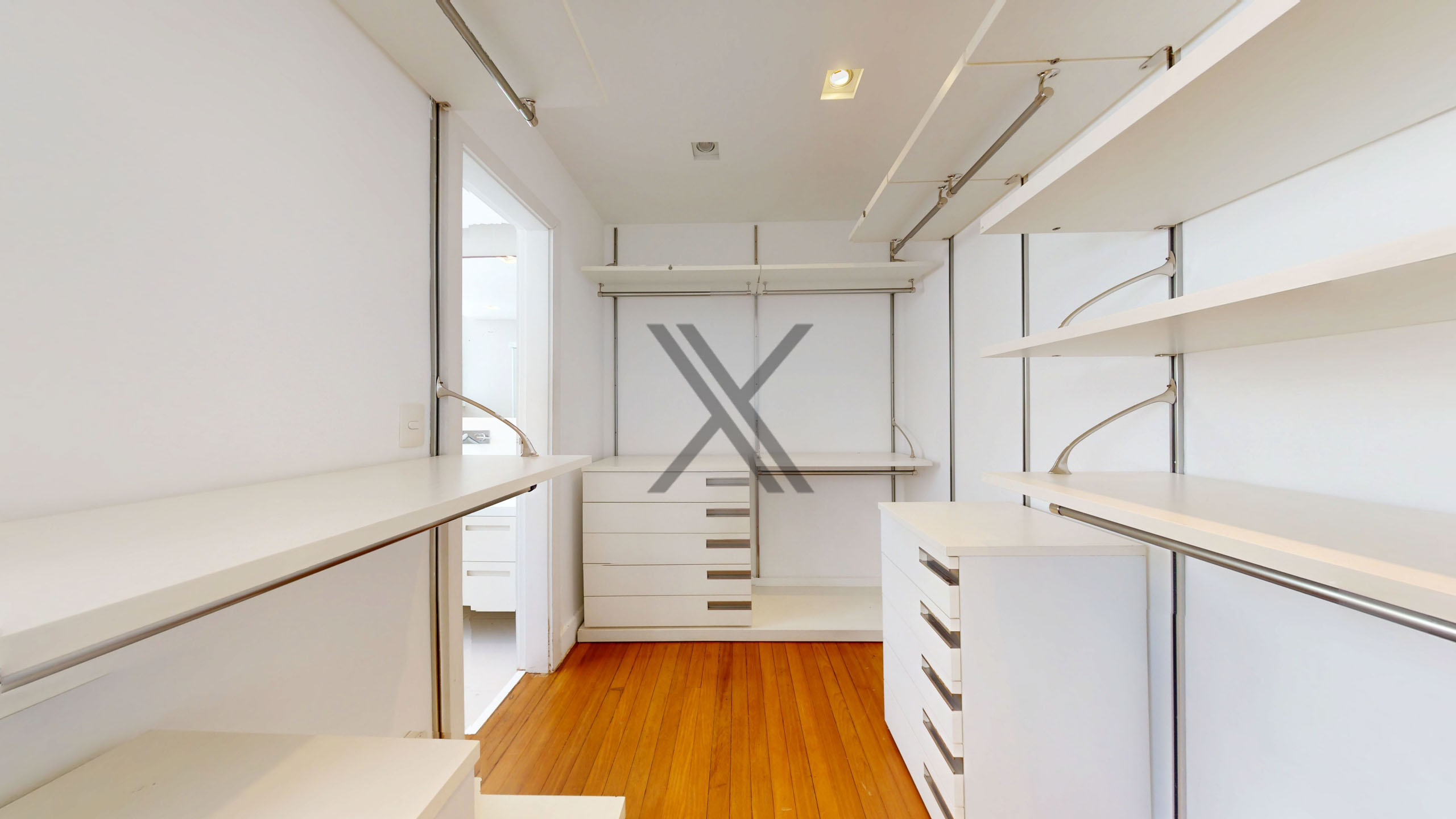 Na parte íntima, são ao todo 4 suítes, todas com um bom tamanho, armários e piso em taco original. A suíte master conta com espaço para closet com grande quantidade de armários, além do banheiro espaçoso.