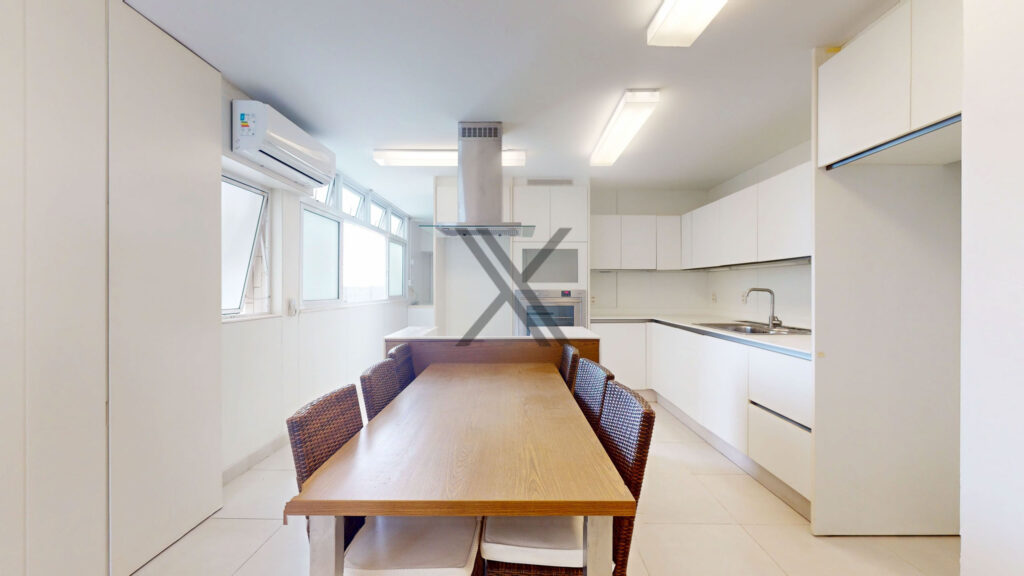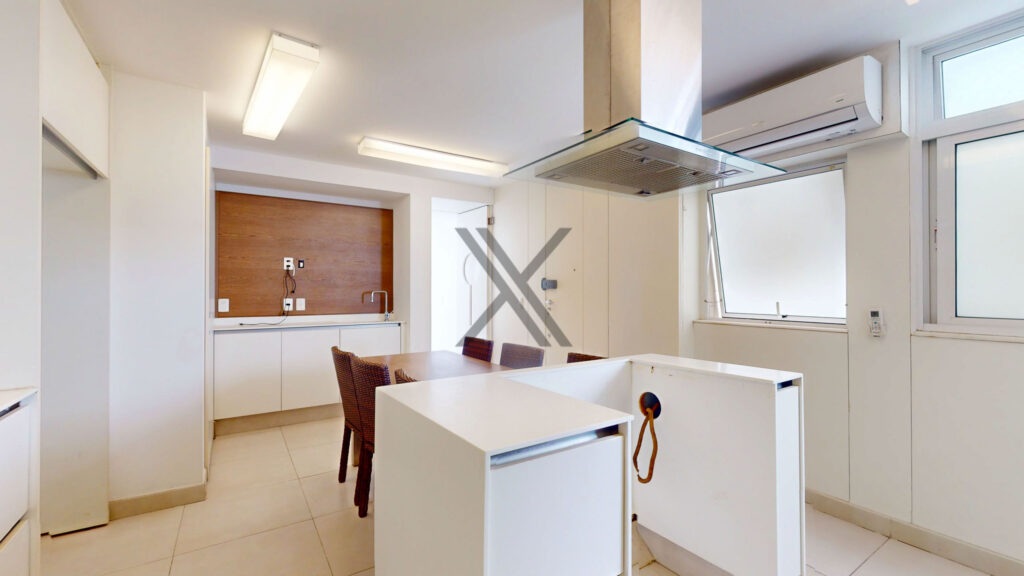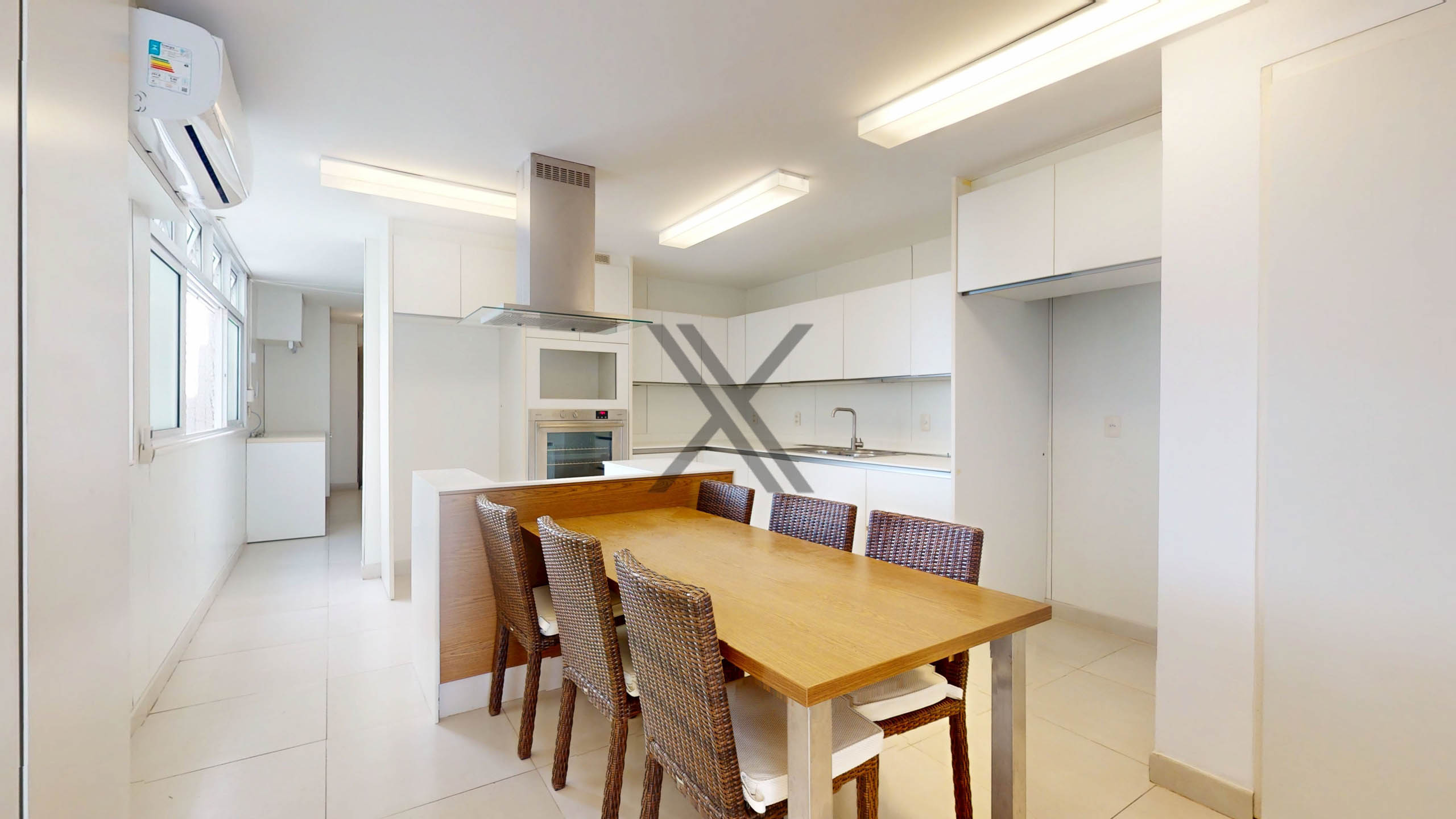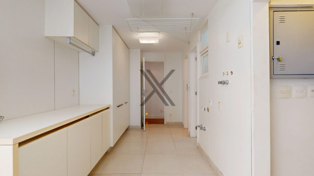 A cozinha possui ótimo espaço de circulação, grande quantidade de armários e bancadas para apoio e organização, além de uma belíssima ilha com área para pequenas refeições. A área de serviço/ lavanderia está separada e conta com duas dependências completas para funcionários.