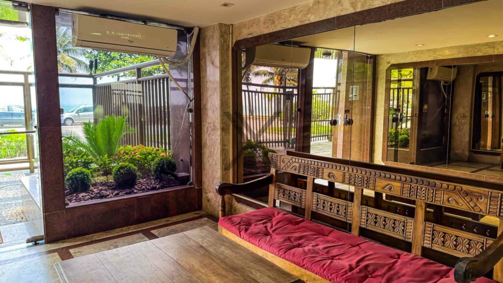 O edifício oferece segurança completa com serviço de portaria 24 horas e circuito interno de TV.