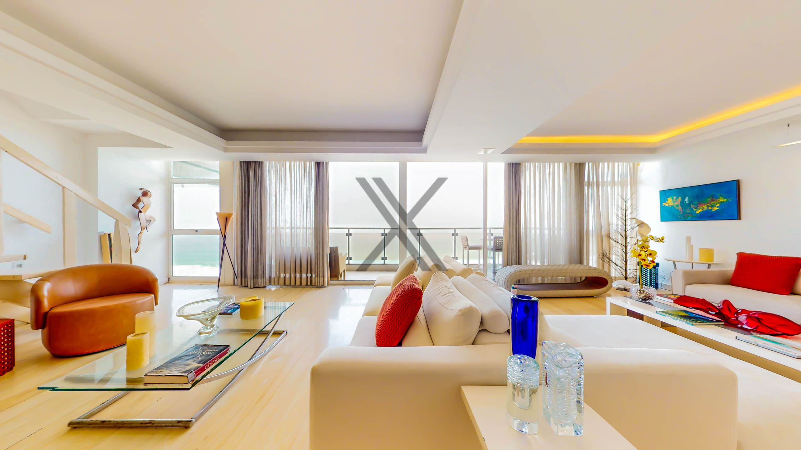 Cobertura duplex de 376 m², vista frontal mar, no Leblon. Localizado em um prédio com apenas 1 apartamento por andar, o imóvel é rico em detalhes e oferece inúmeras possibilidades de customização do seu interior, além de receber o sol da manhã. Situado em um ponto nobre e estratégico da orla, fica perto do Metrô e da rua Dias Ferreira.