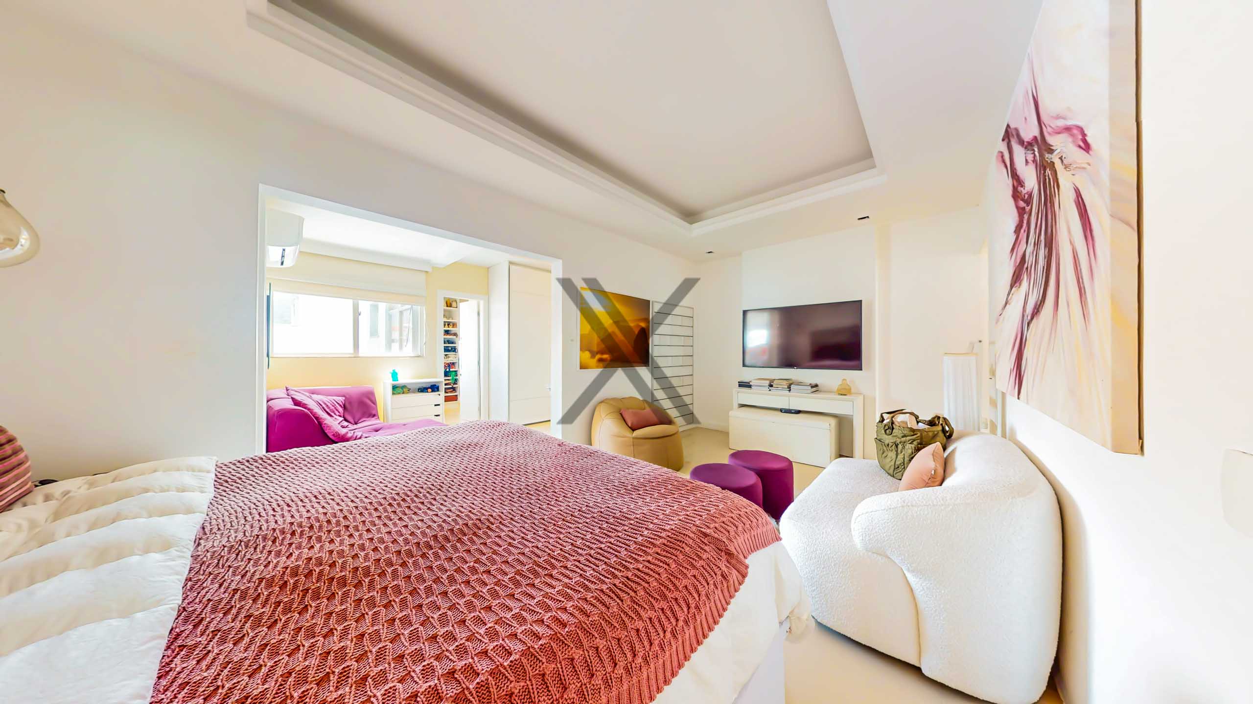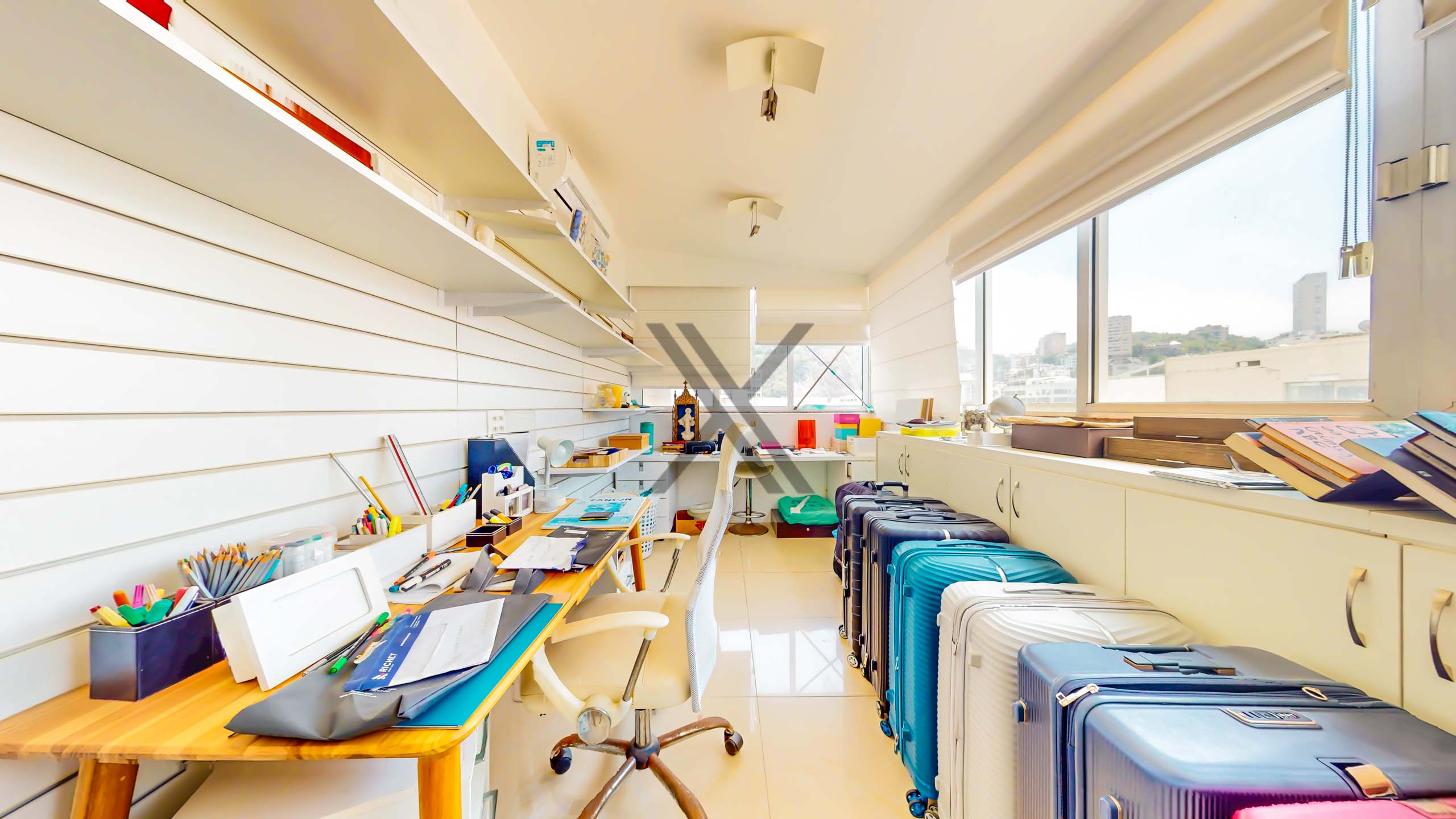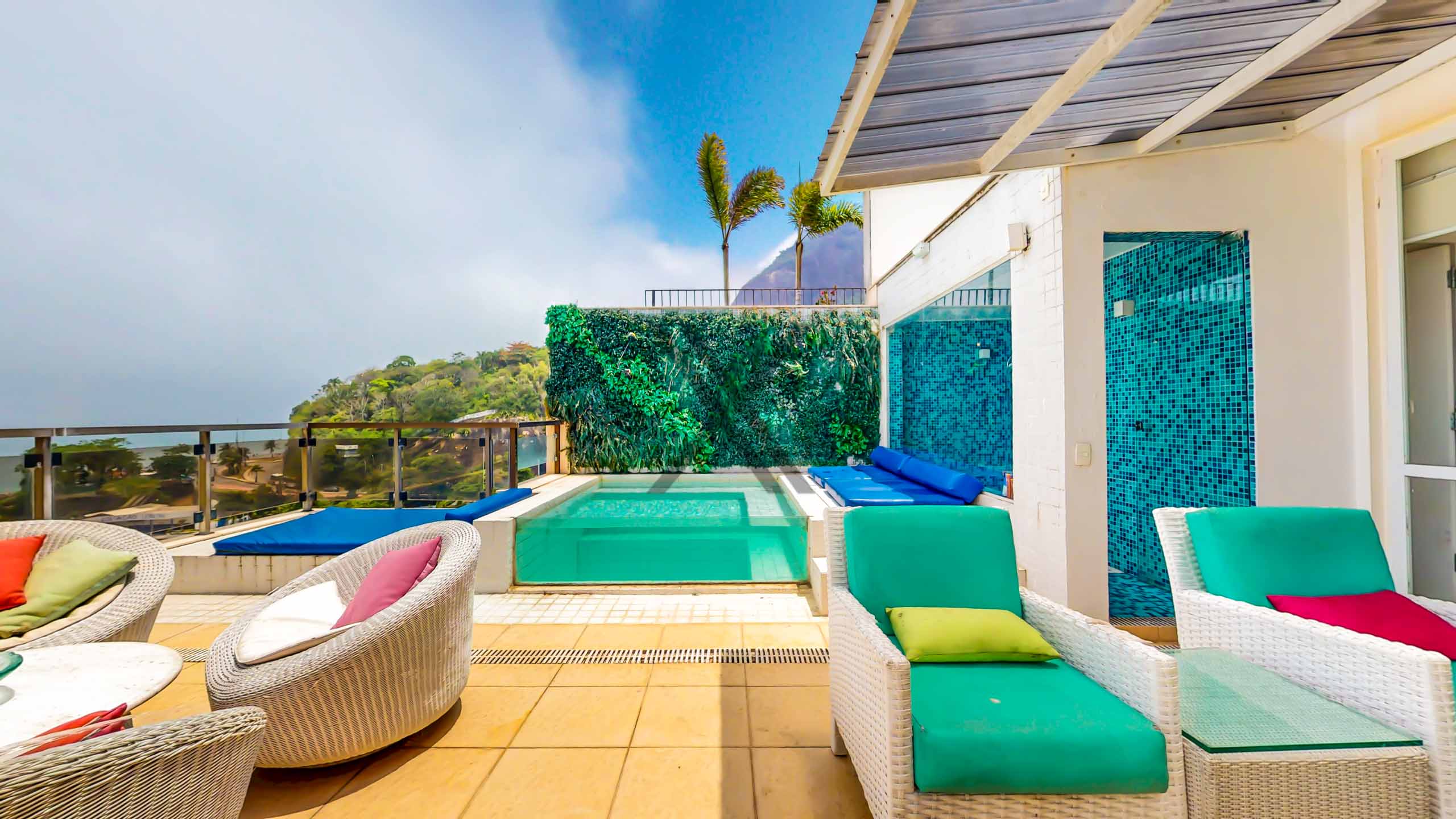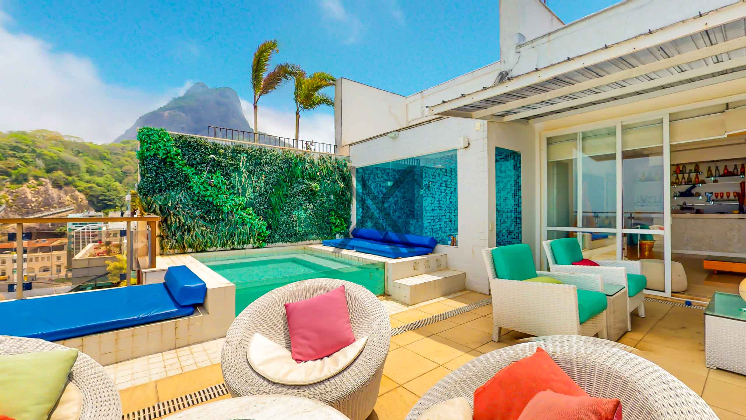 No segundo pavimento encontramos uma ampla sala de convívio, lavabo e suíte master. Originalmente, a área privativa possui 2 suítes, porém ambas foram unificadas, trazendo assim uma generosa metragem para o cômodo. O espaço conta com dois banheiros, walk-in closet e escritório. Na parte externa, temos a área de lazer do imóvel, com churrasqueira, piscina e sauna. Uma vista para o Morro Dois Irmãos e para grande parte da orla do Leblon coroam o ambiente.
