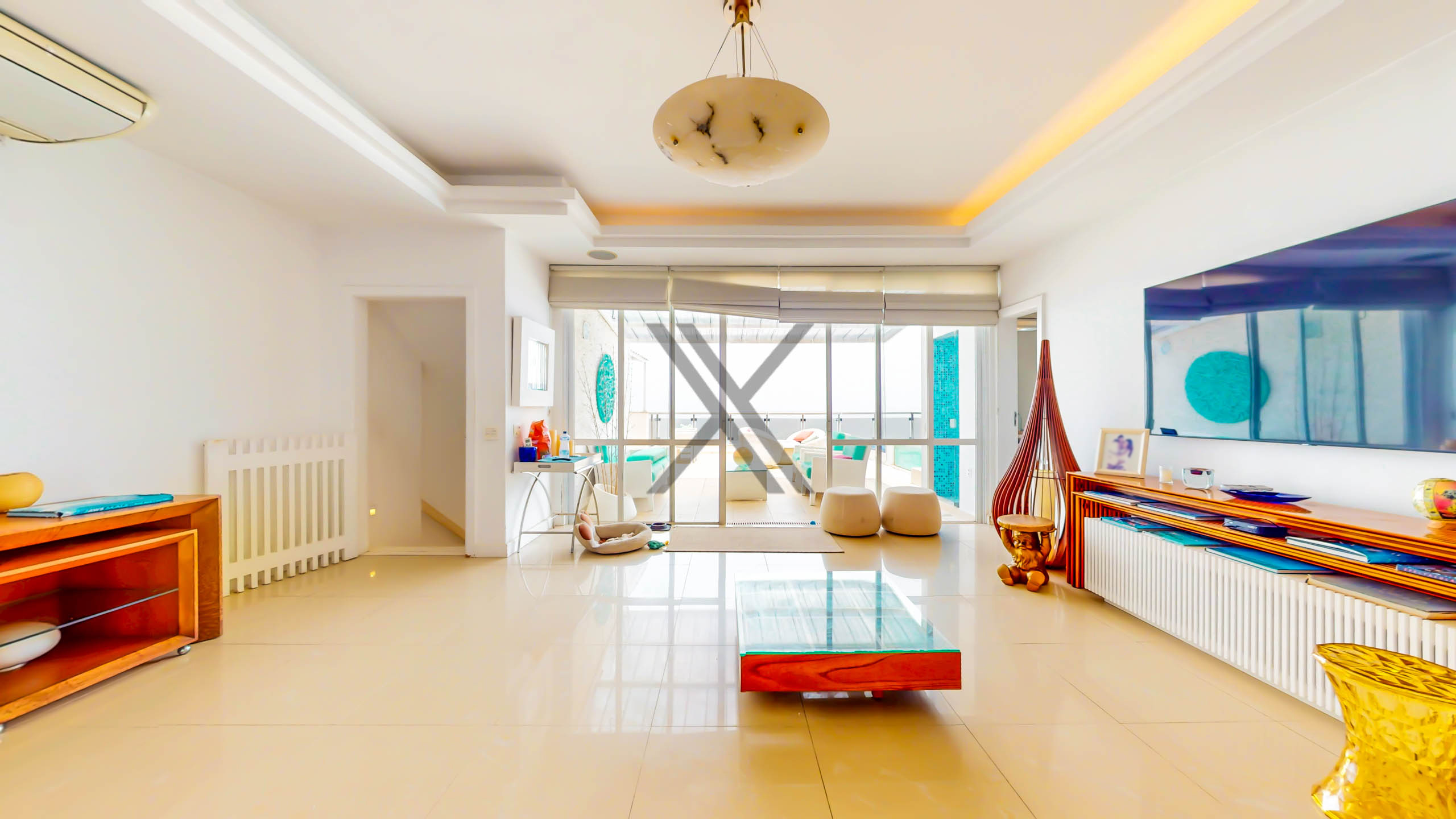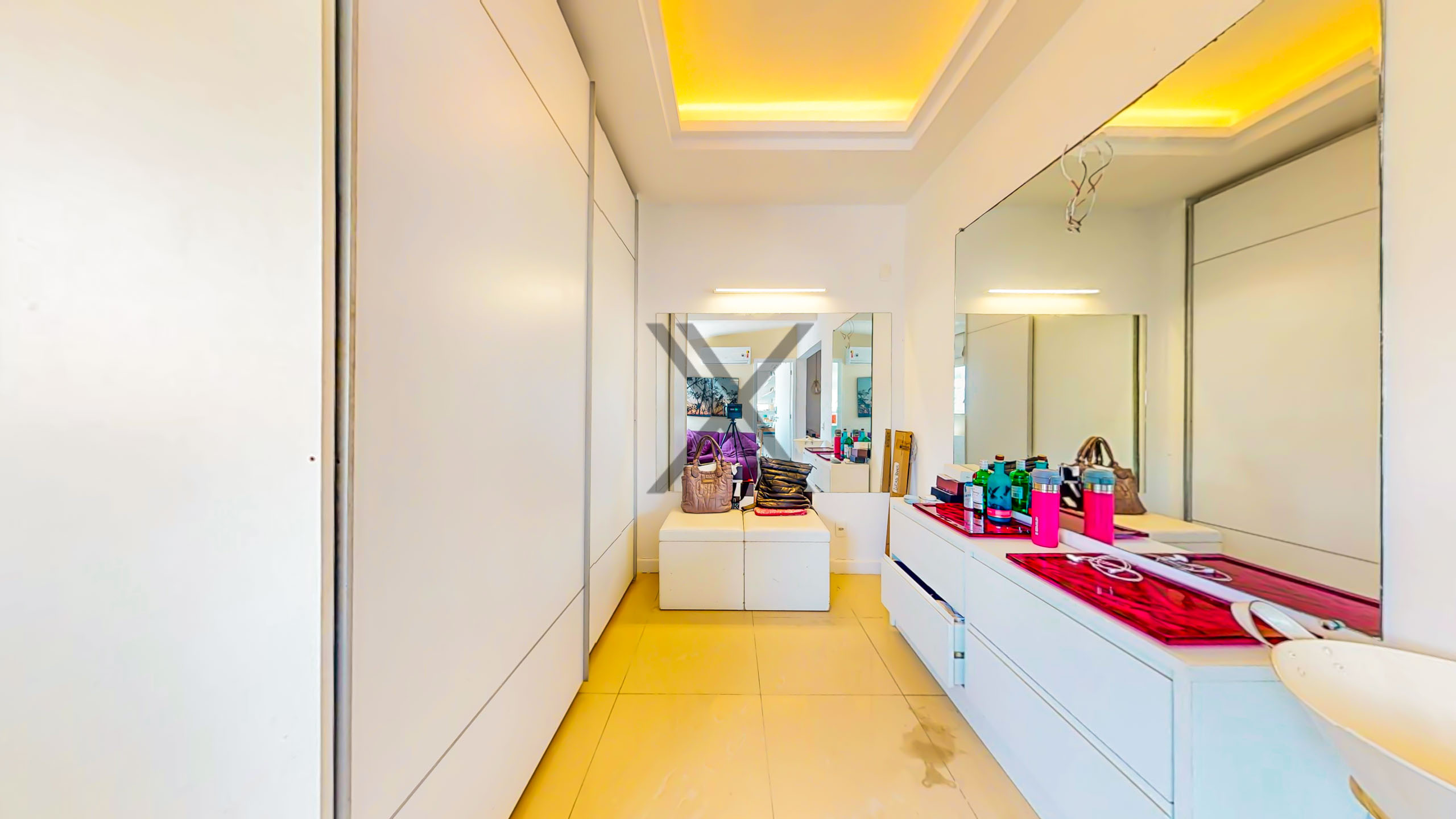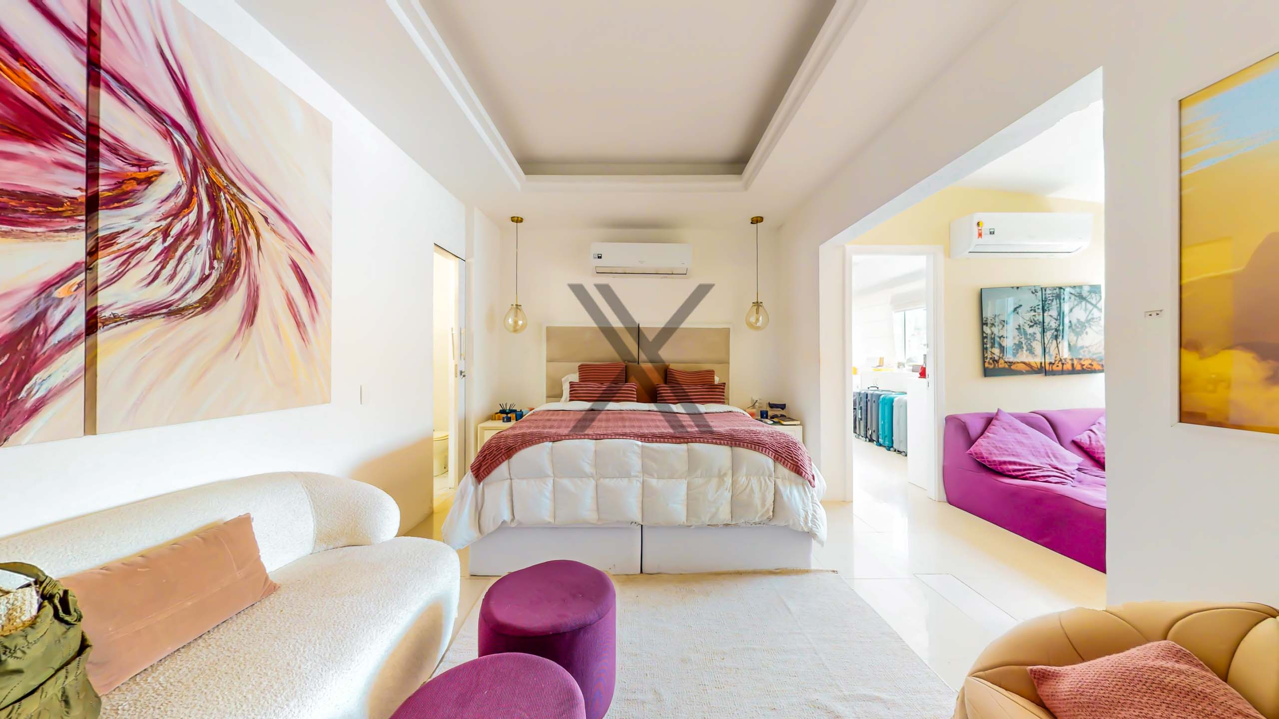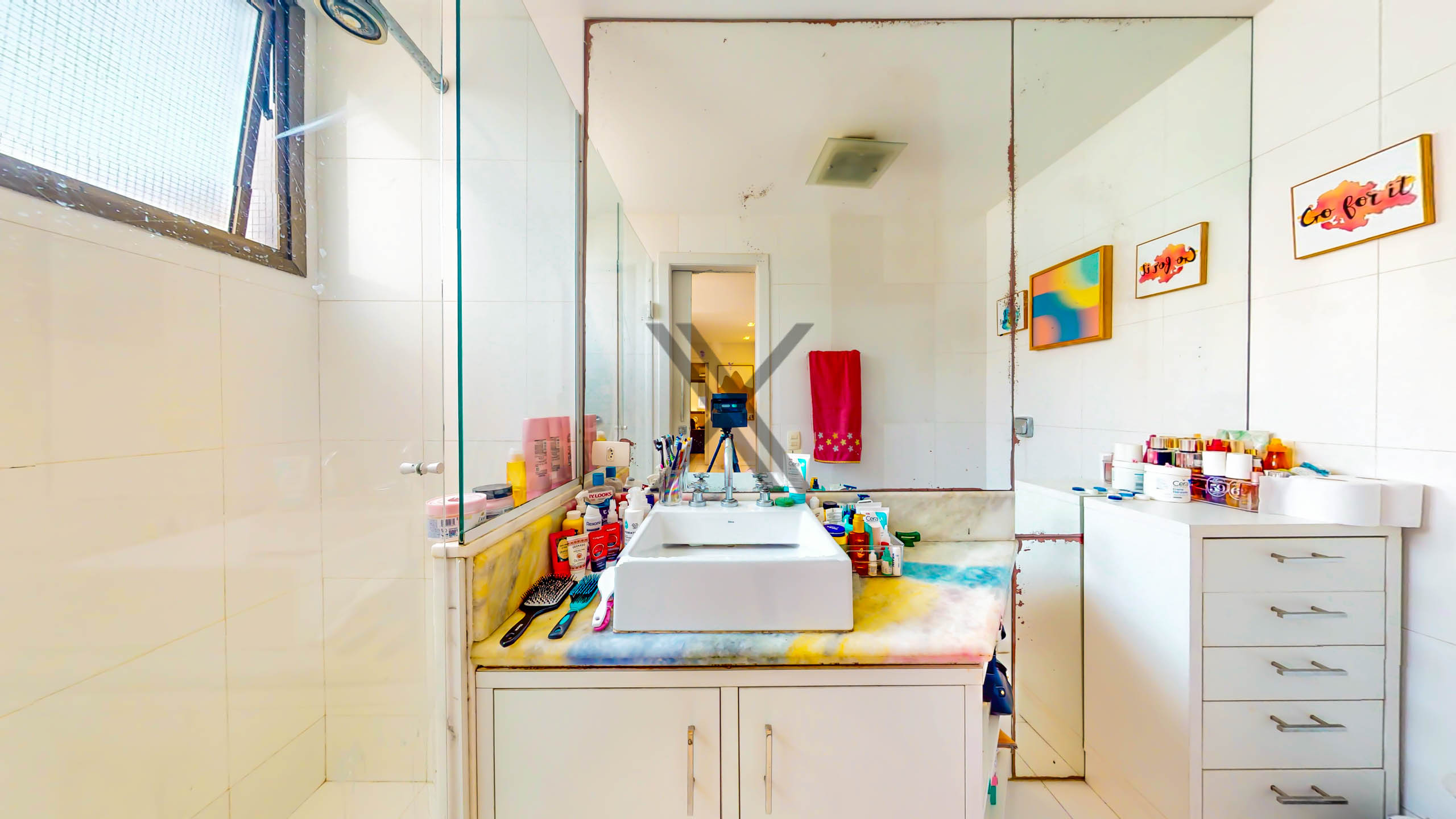 No segundo pavimento encontramos uma ampla sala de convívio, lavabo e suíte master. Originalmente, a área privativa possui 2 suítes, porém ambas foram unificadas, trazendo assim uma generosa metragem para o cômodo. O espaço conta com dois banheiros, walk-in closet e escritório. Na parte externa, temos a área de lazer do imóvel, com churrasqueira, piscina e sauna. Uma vista para o Morro Dois Irmãos e para grande parte da orla do Leblon coroam o ambiente.