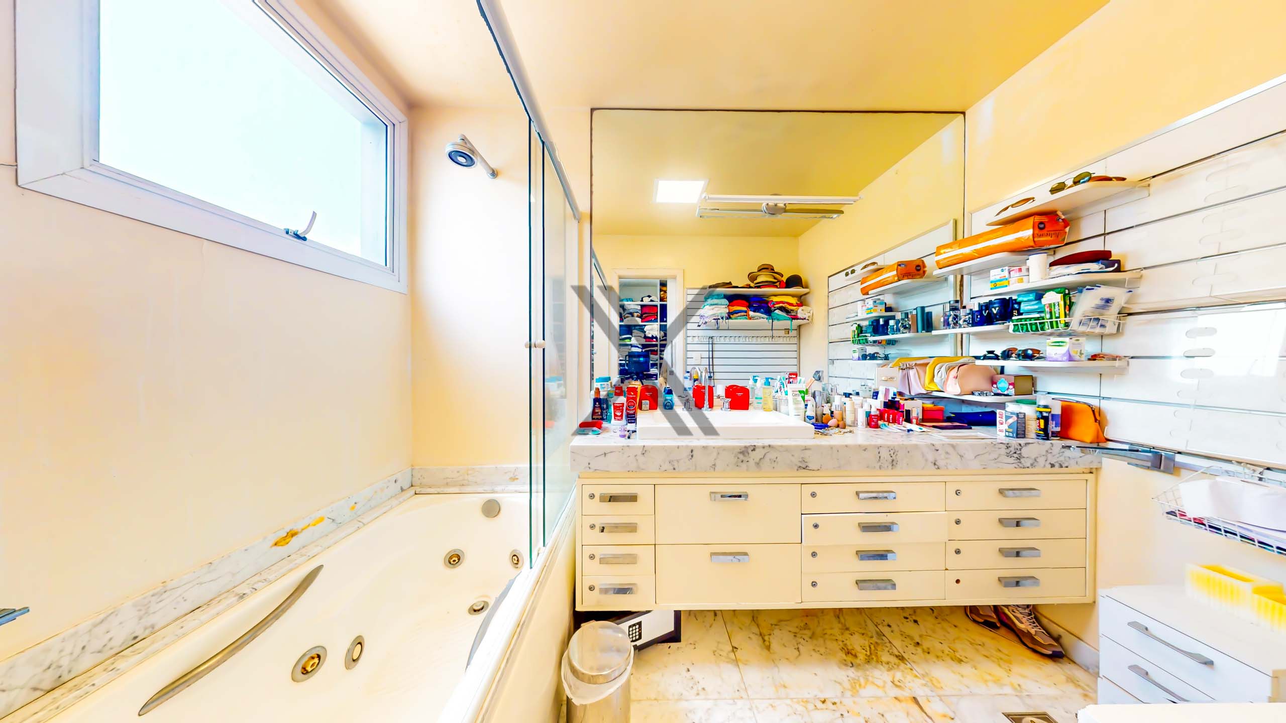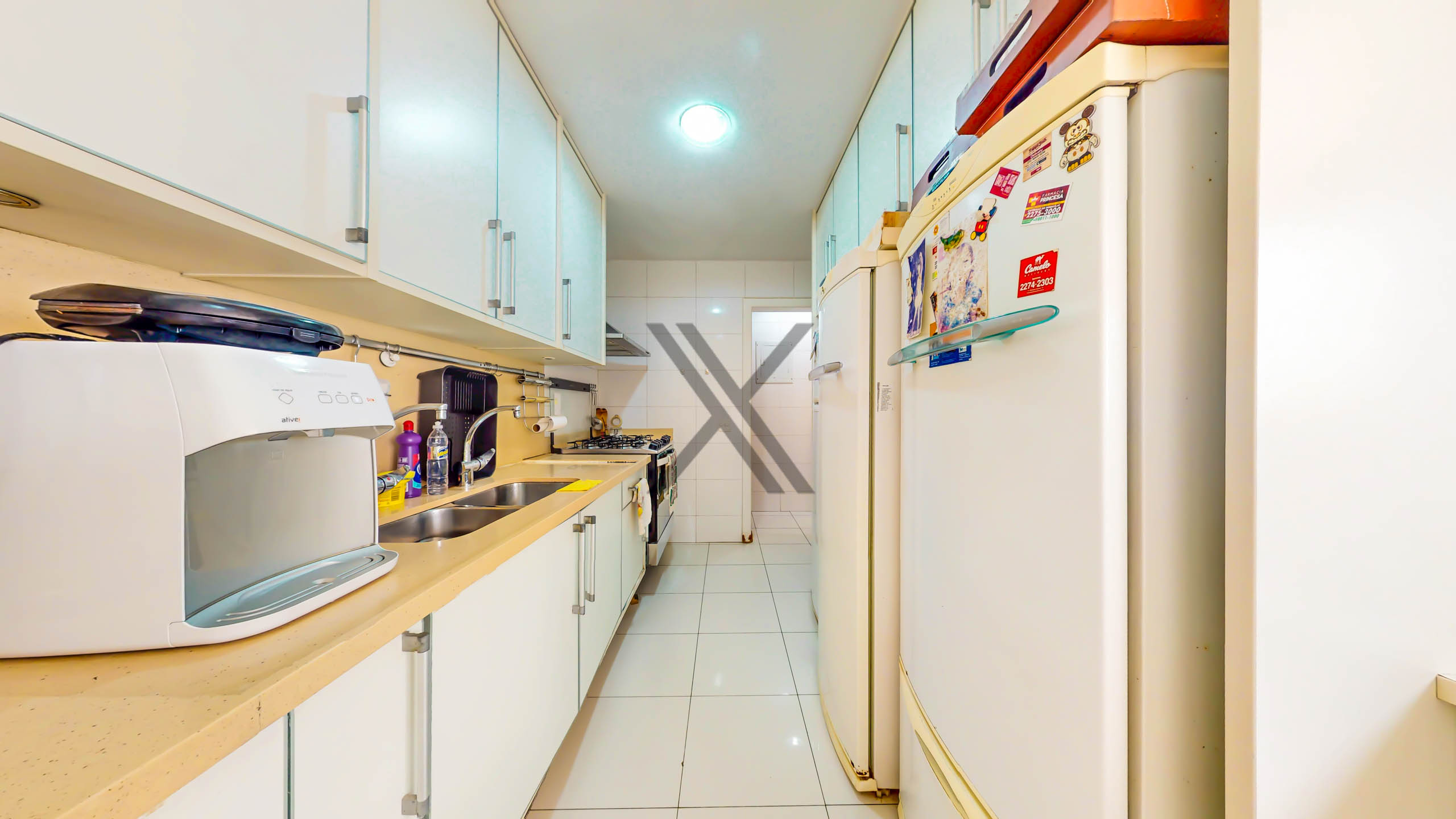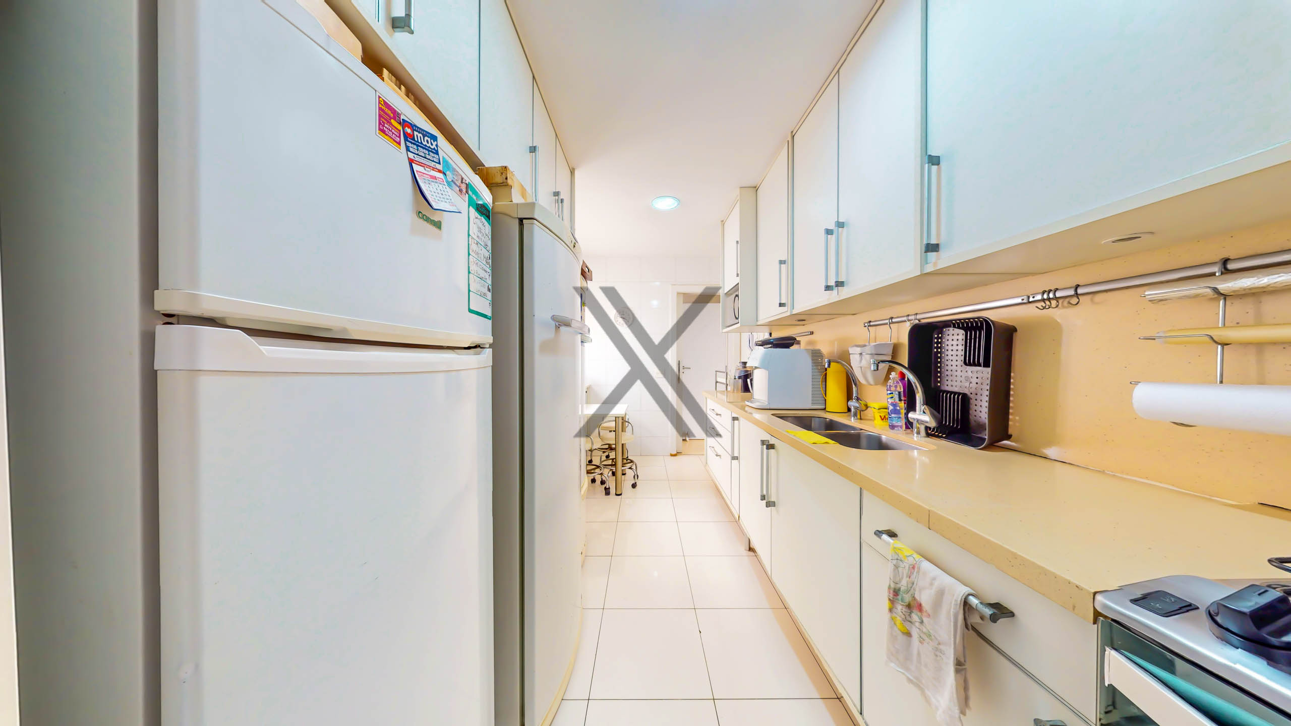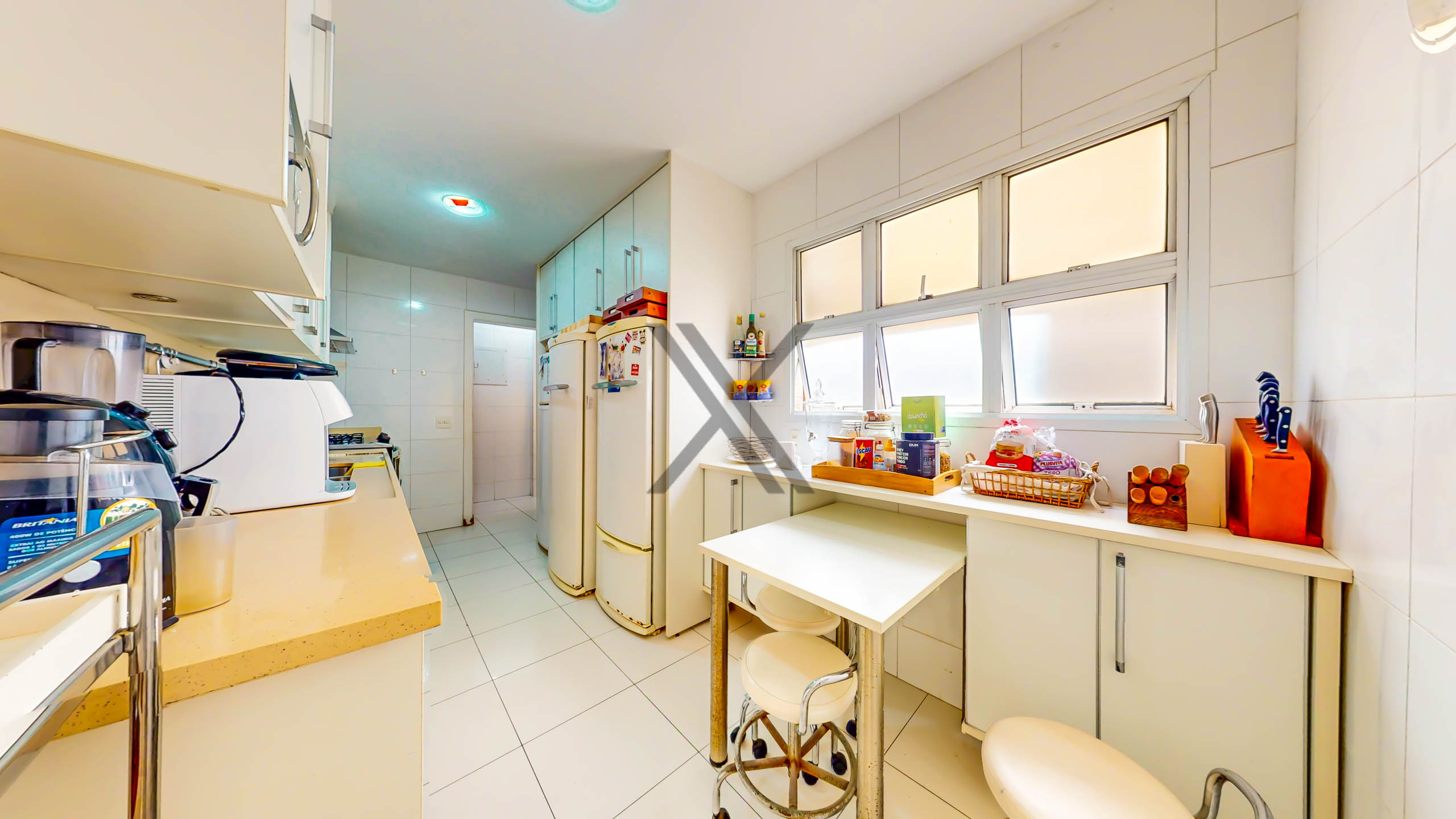 A cozinha possui copa para praticidade do dia a dia dos moradores, grande quantidade de armários e longas bancadas para apoio e organização, os quais garantem bastante espaço de armazenagem. A área de serviço está separada da cozinha e conta com armários, além de uma dependência completa para funcionários.