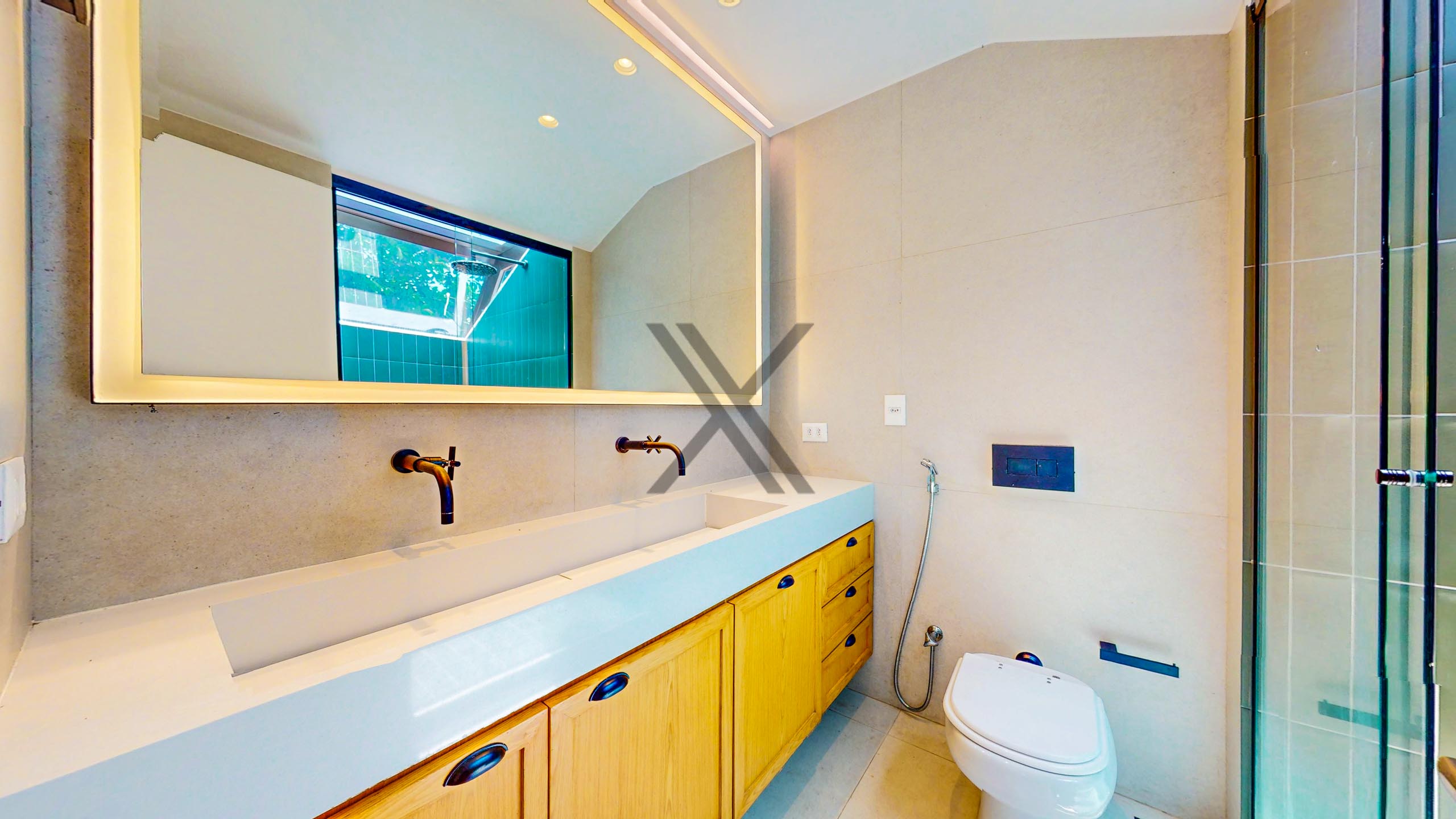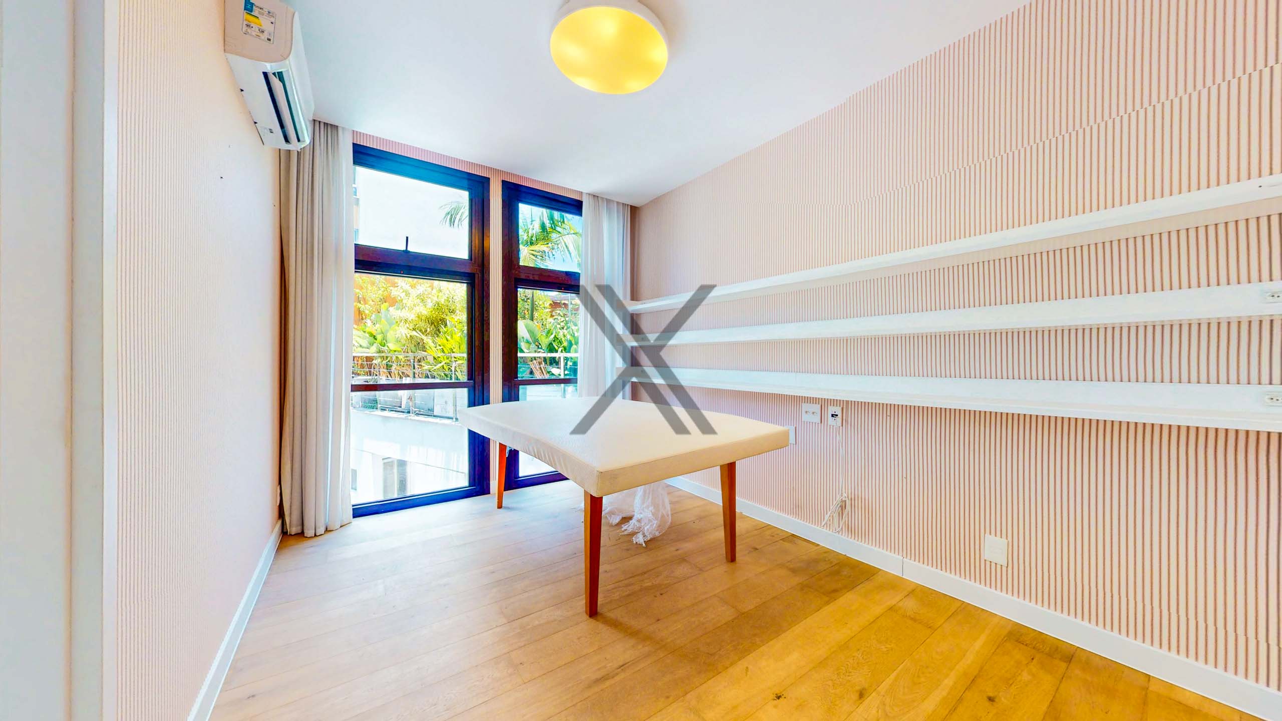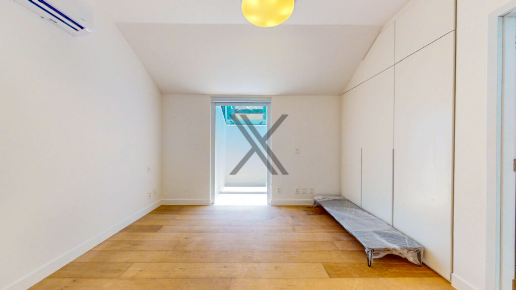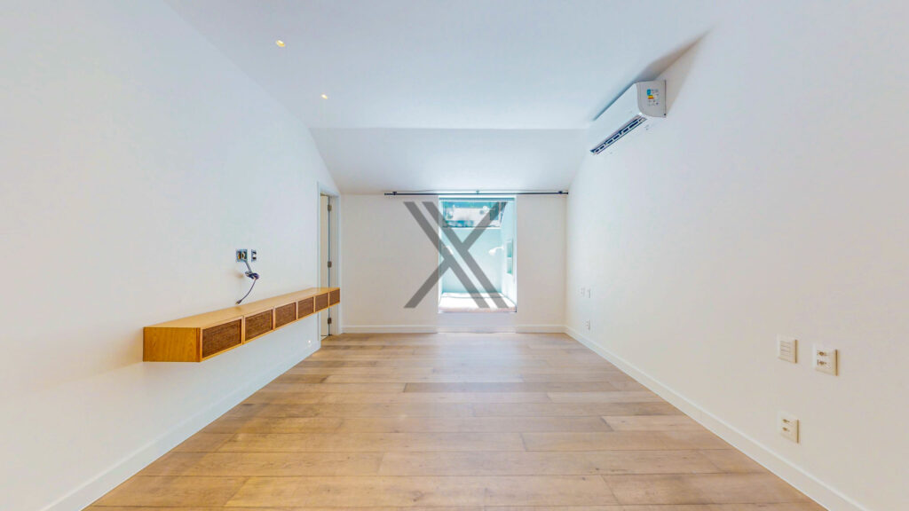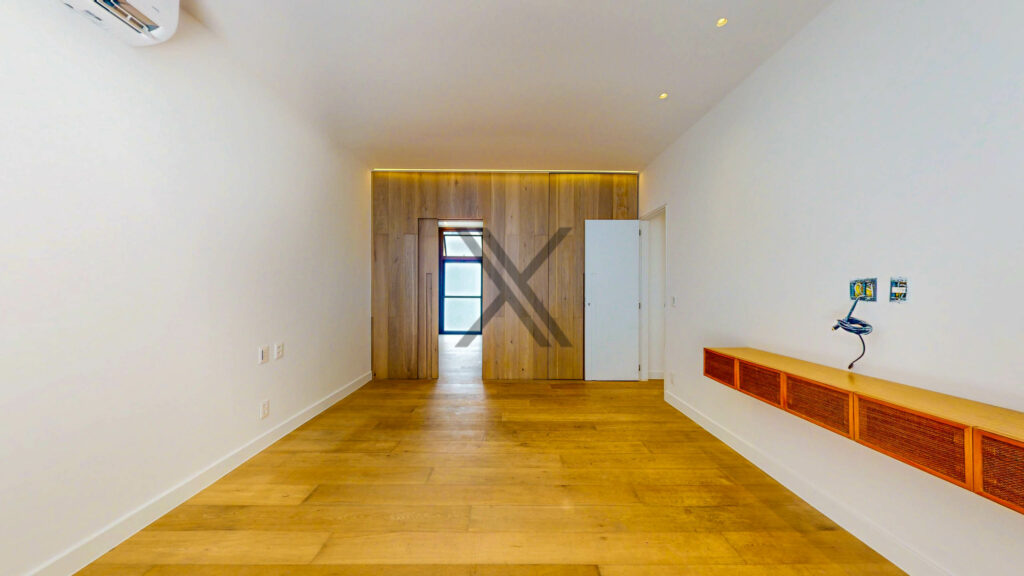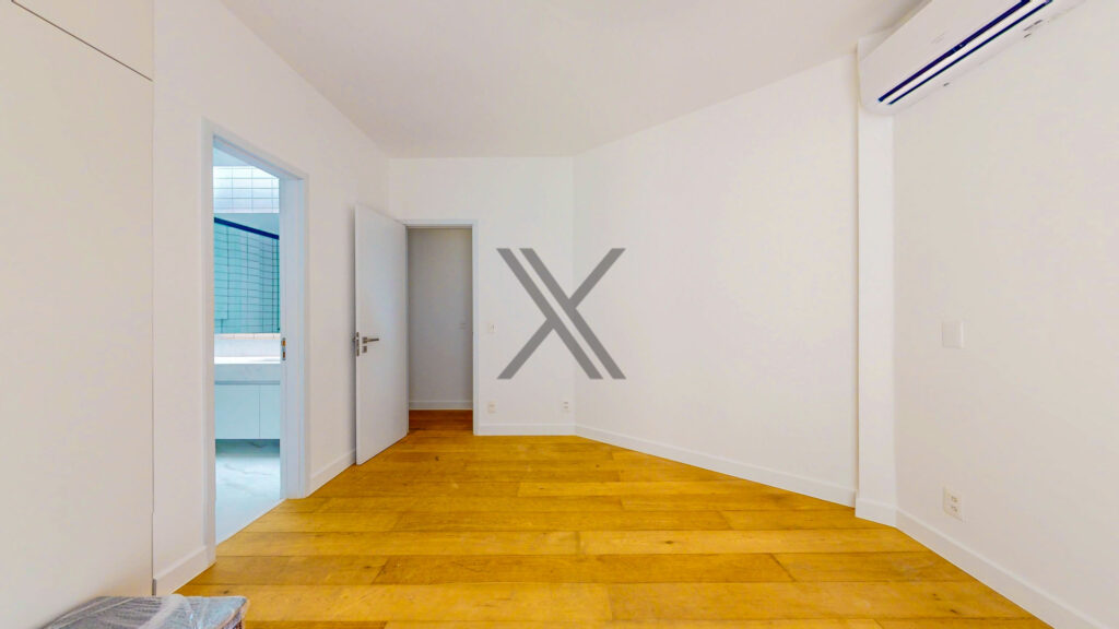 Na área privativa há 3 suítes, todas de ótimo tamanho, com splits e farta iluminação natural. A suíte máster é um show à parte, com um espaçoso walk-in closet e banheiro moderno com vista para o verde.