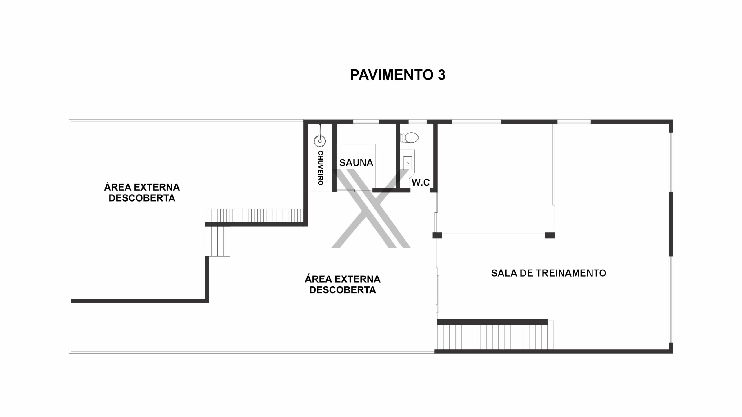 O terceiro pavimento contempla uma academia com área de treino, sauna, chuveirão e lavabo. Na parte externa, os moradores também podem desfrutar de mais um espaço de convivência ao ar livre, com espaço para projetor e a mesma vista espetacular do mar e das montanhas.