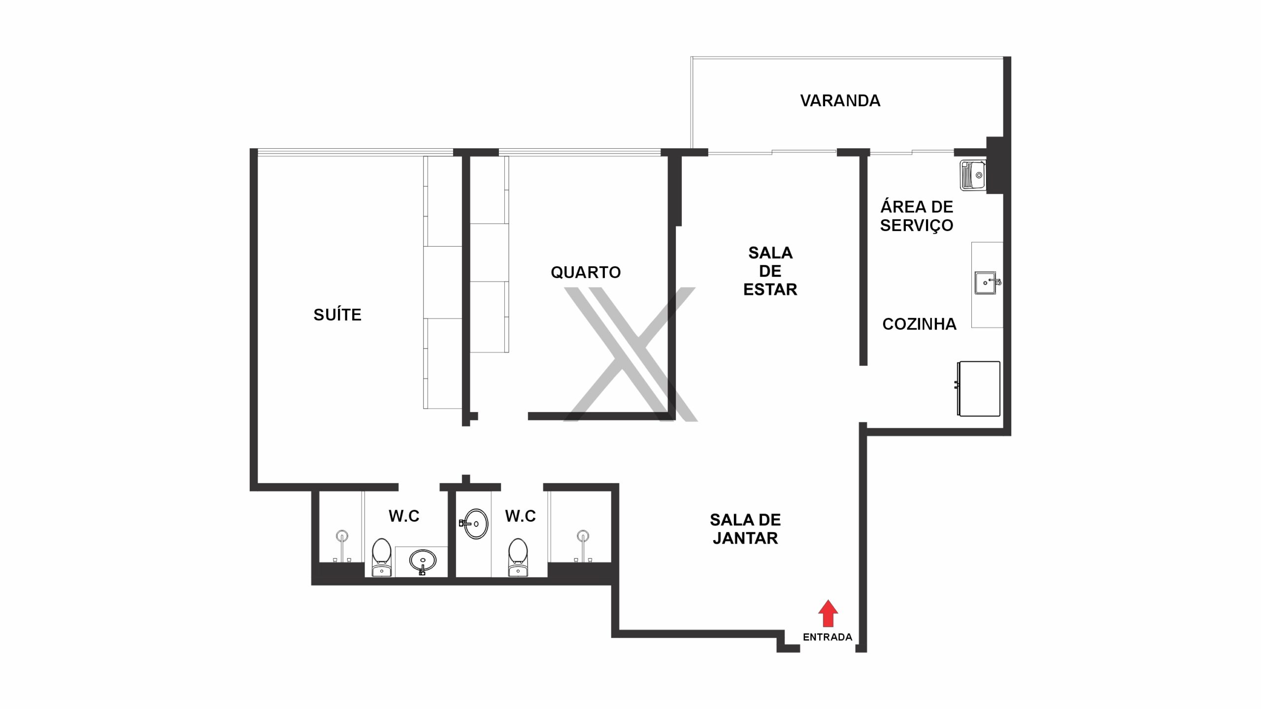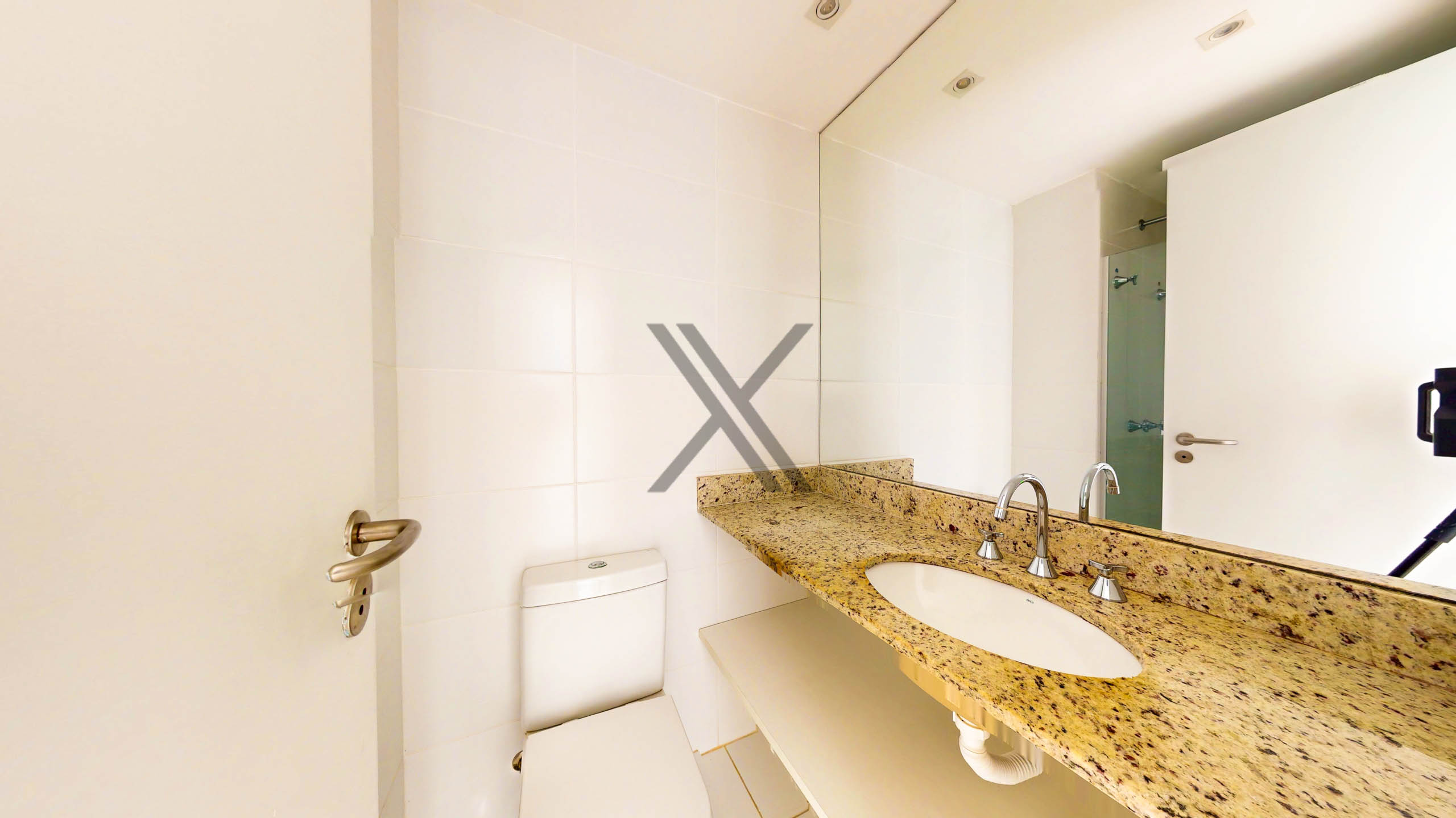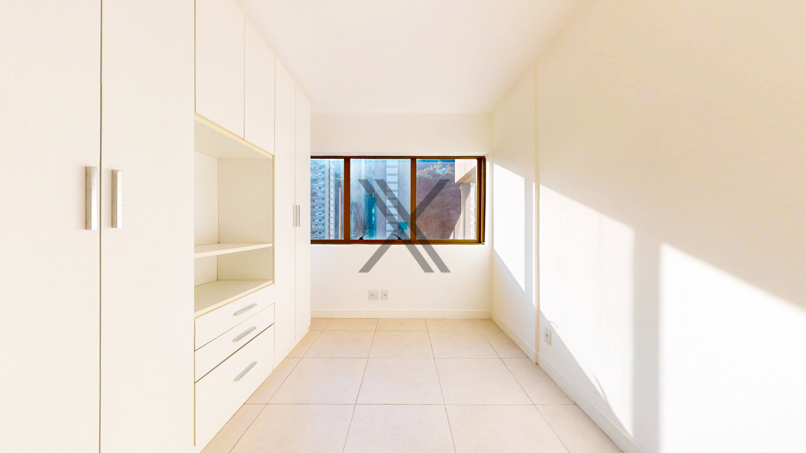 Na área privativa temos 2 quartos, sendo 1 suíte, ambos com armários sob medida, bom espaço de armazenagem e farta iluminação natural, além de um banheiro de apoio à sala e ao quarto.