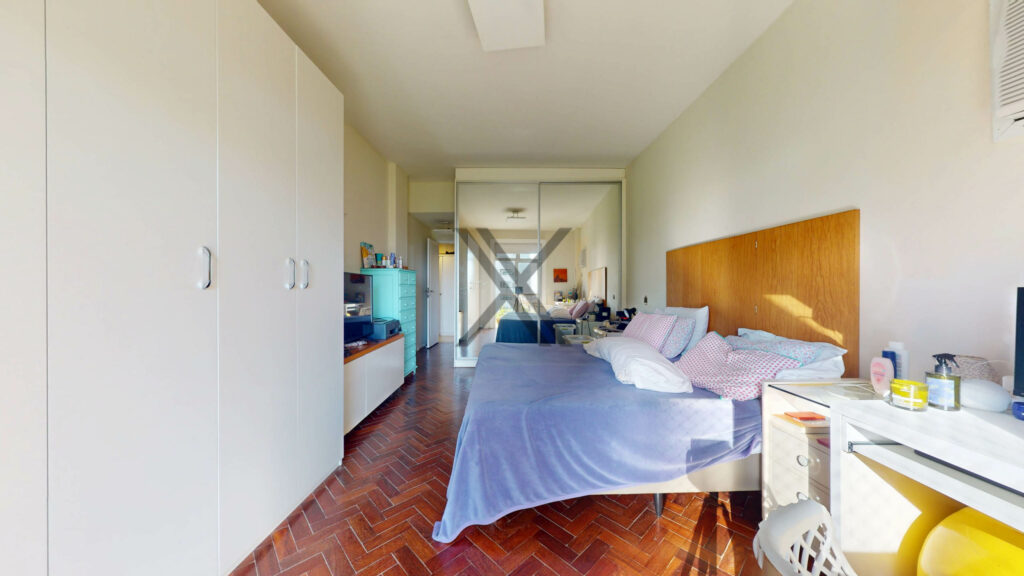 Na área privativa, há 2 suítes, ambas com ótima metragem, excelente iluminação natural, além de farta quantidade de armários. A suíte master possui acesso à varanda e um generoso banheiro.
