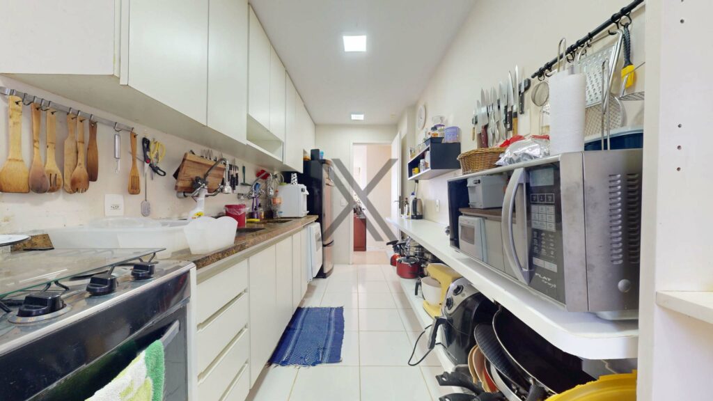 A cozinha tem um ótimo tamanho e boa quantidade de armários, além de bancadas para apoio e organização. Em anexo, lavanderia e dependência completa para funcionários.
