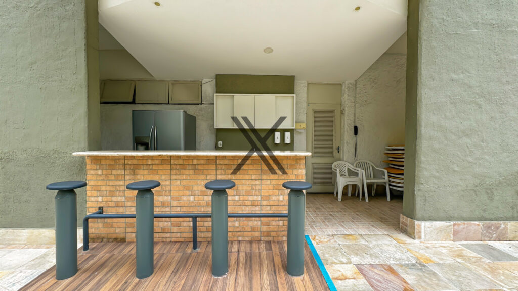 Na área de lazer do prédio, é possível usufruir de playground, piscina com um bar de apoio, academia e salão de festas. O condomínio oferece portaria 24 horas, com controle de acessos e monitoramento por câmeras, além de um bicicletário.