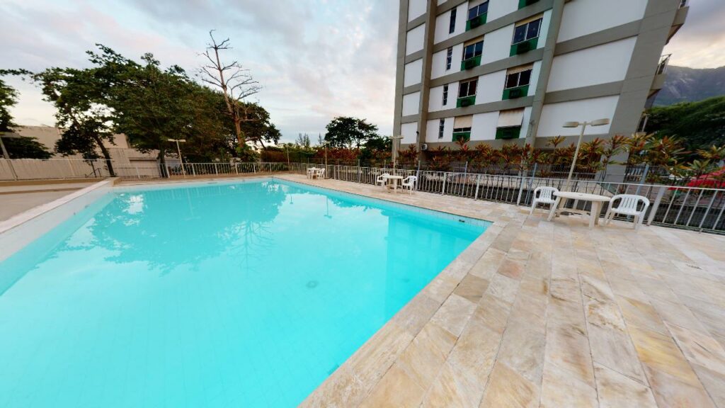 Na parte privativa, o imóvel possui 3 quartos, sendo 1 suíte master com walk-in closet, e um banheiro social de apoio. Todos os quartos têm ótimas metragens e janelas amplas, que garantem excelente ventilação natural. Um dos quartos conta com varanda, que oferece uma linda vista da Pedra da Gávea e das montanhas.