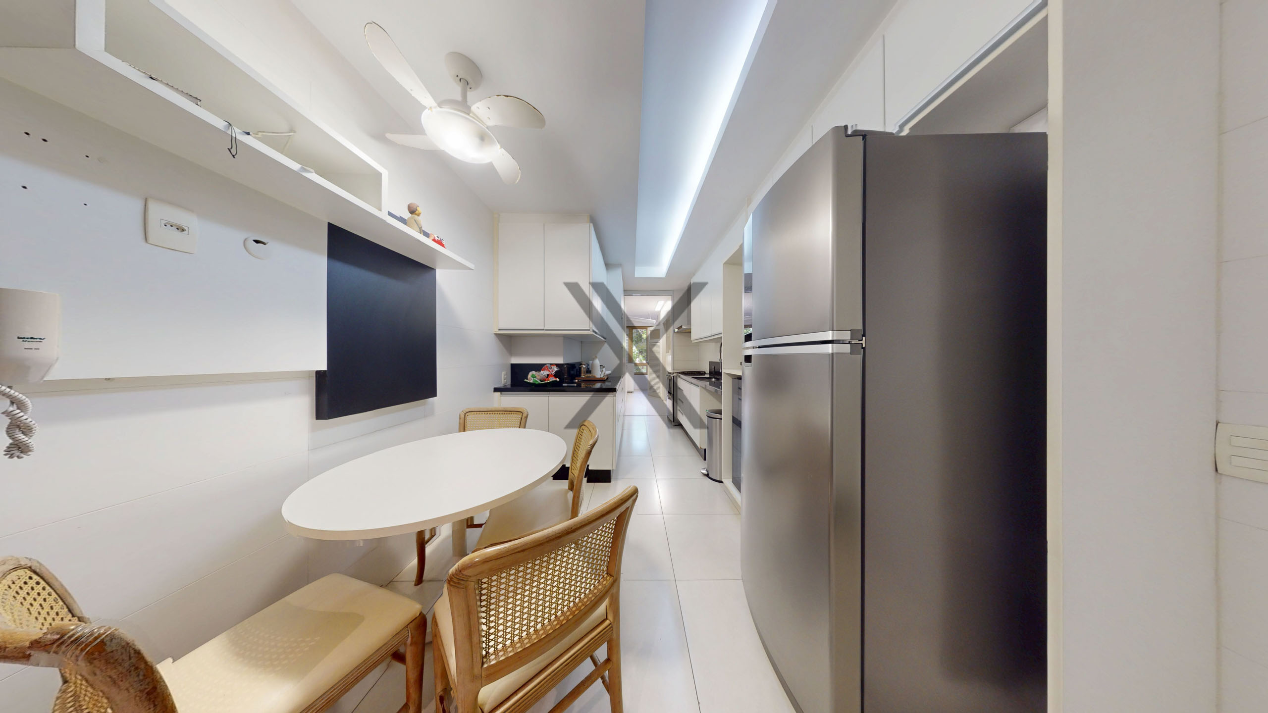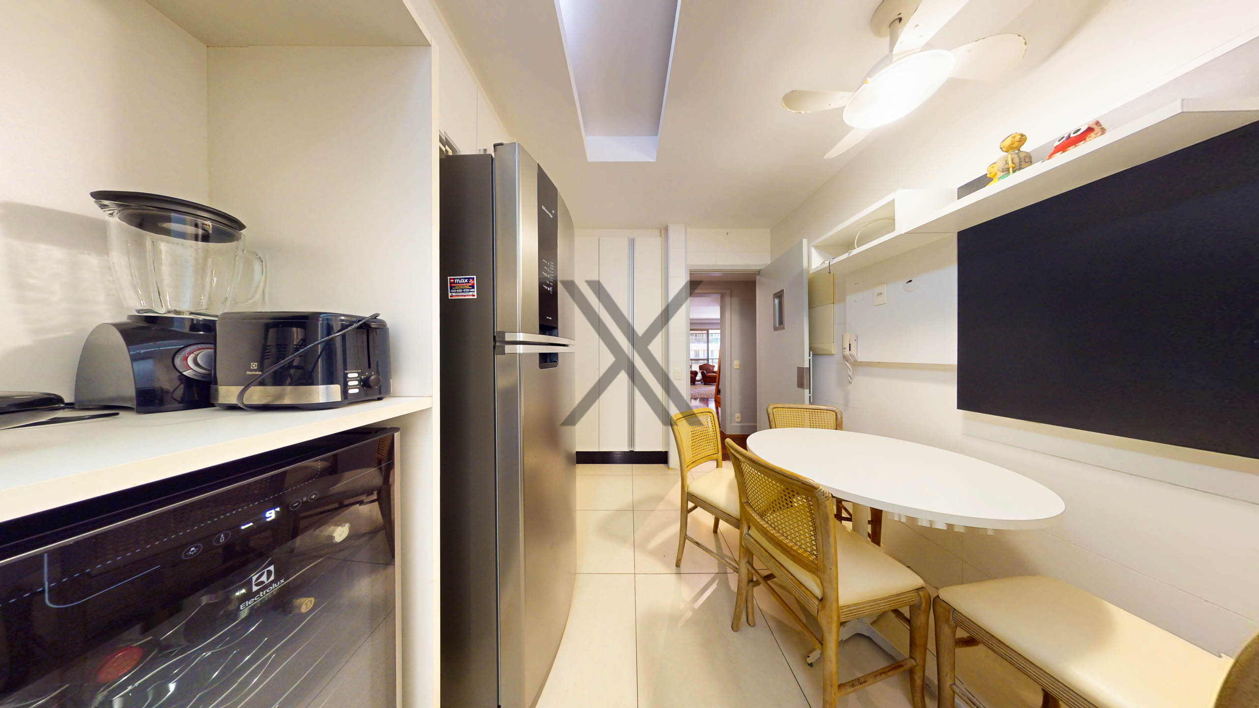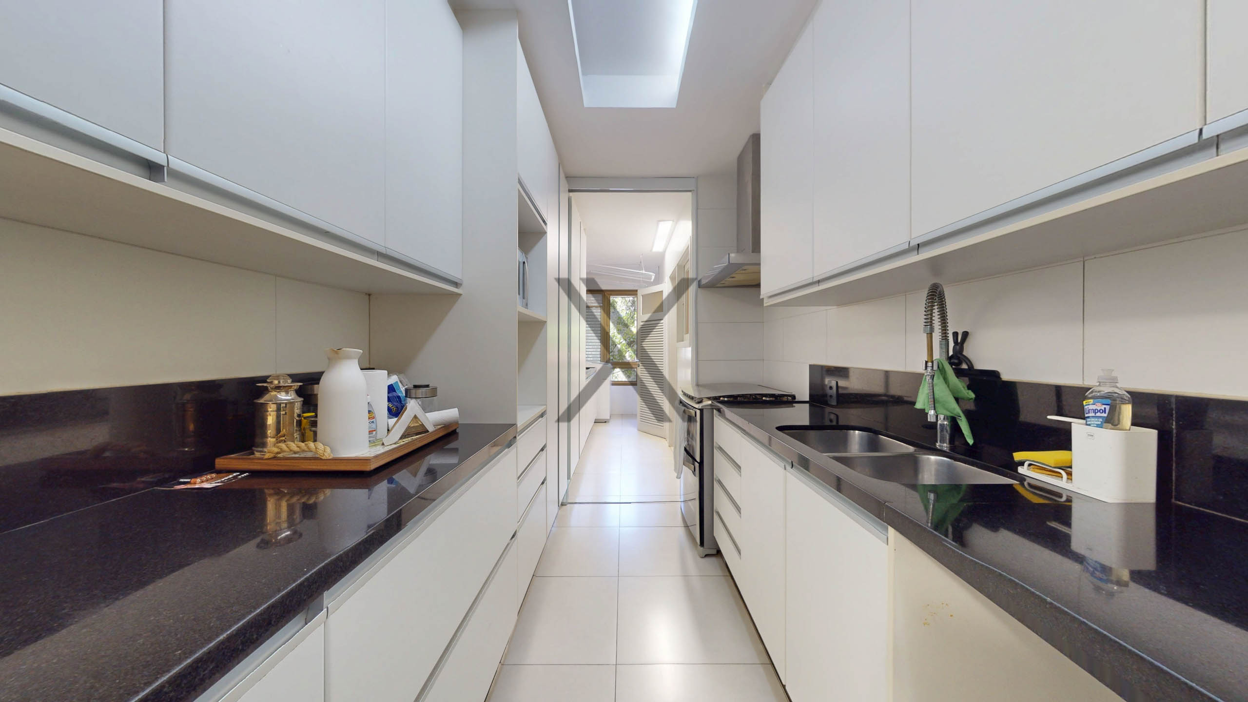 A cozinha, além de possuir grandes áreas de bancada, conta com bastante espaço de armazenagem e copa de apoio para pequenas refeições. Em anexo, área de serviço com duas dependências completas para funcionários.