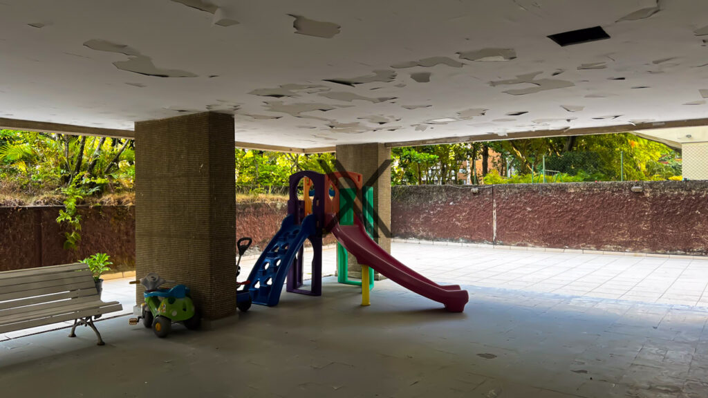 O prédio apresenta infraestrutura para a família, incluindo salão de festas, área externa com churrasqueira e uma grande área onde pode ser usada como playground.
