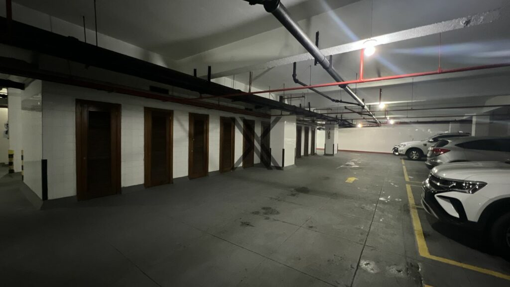 Imóvel com 3 vagas de garagem e box para armazenagem de itens no subsolo.