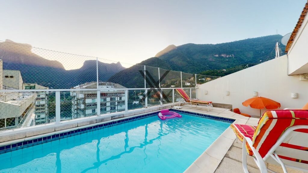 Cobertura duplex de 309 m², em bom estado, em São Conrado. O imóvel recebe o sol da manhã e tem vista para o mar.