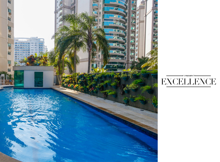 A integração deste condomínio com a natureza tem seu início na vista privilegiada dos edifícios para a Lagoa de Jacarepaguá e transcorre o fator do Península Excellence ficar a poucos passos da exclusiva trilha ecológica da Península. Este verdadeiro refúgio na natureza possui unidades de 2, 3 e 4 quartos de 94m² a 204m² e conta com área comum de lazer completa com sauna, salão gourmet, academia e playground para as crianças. O prédio é ideal para que as famílias passem seus melhores momentos juntos. Um diferencial do Península Excellence é o fato da piscina ficar bem no centro do condomínio e integrar o projeto paisagístico.